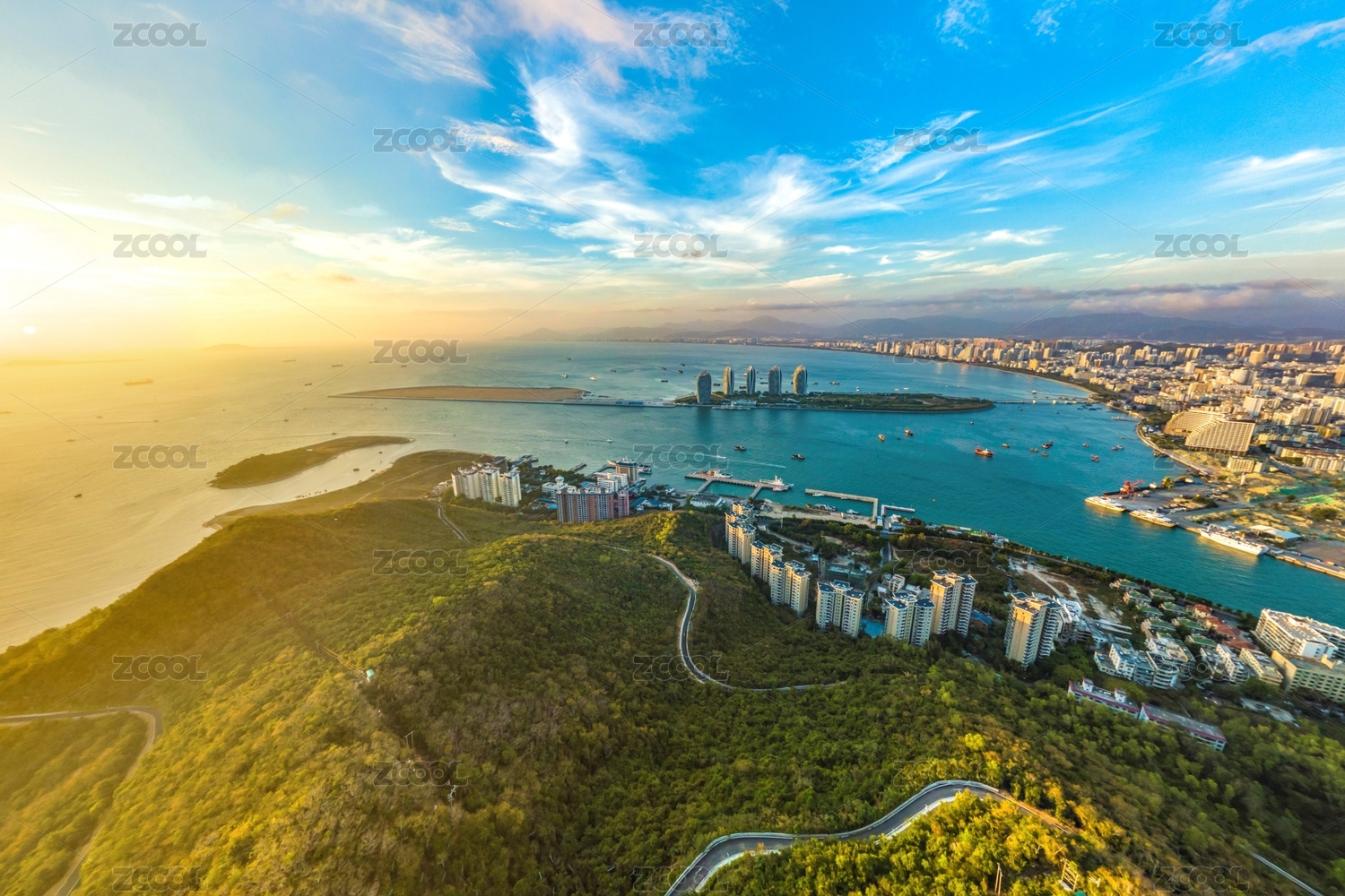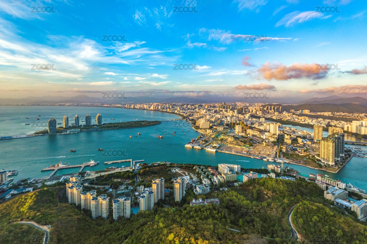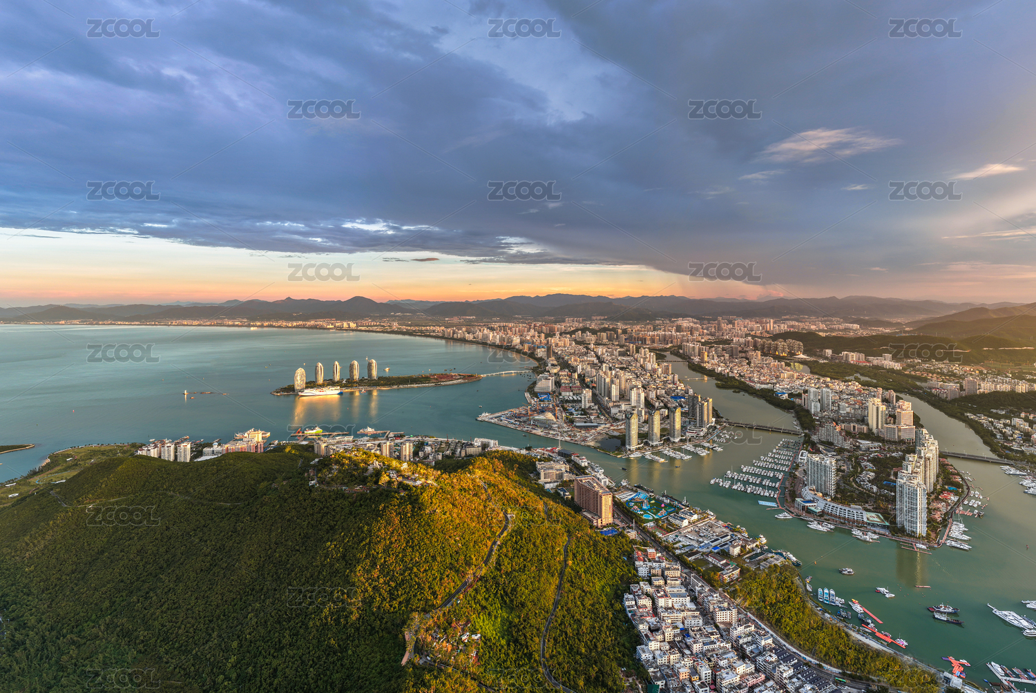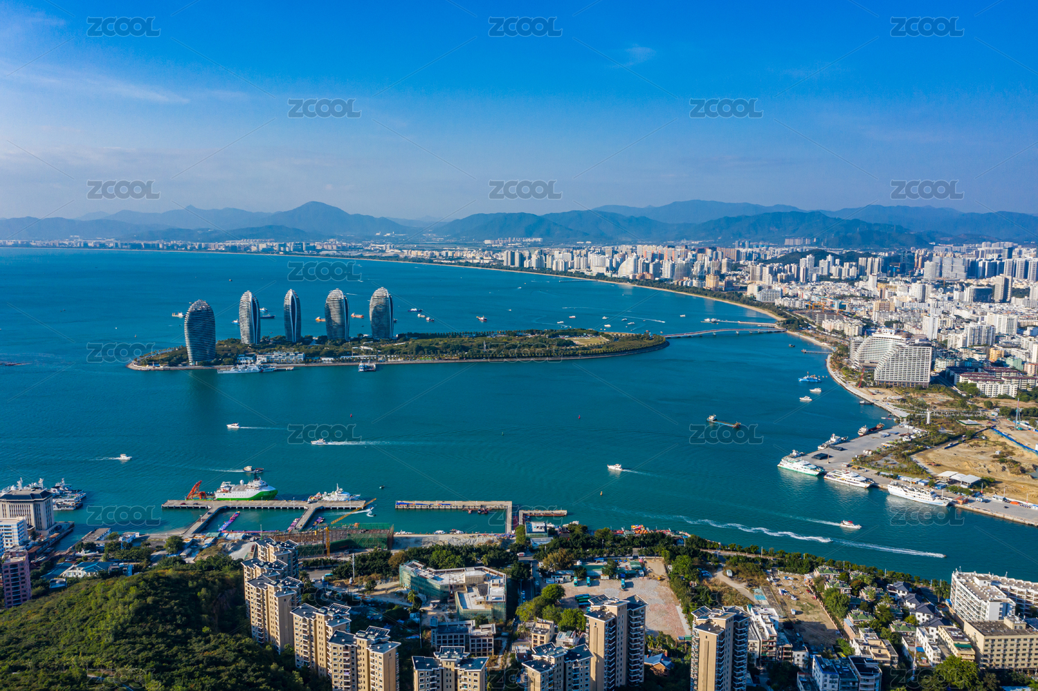 三亚三亚湾游艇码头及周边大东海城市风景航