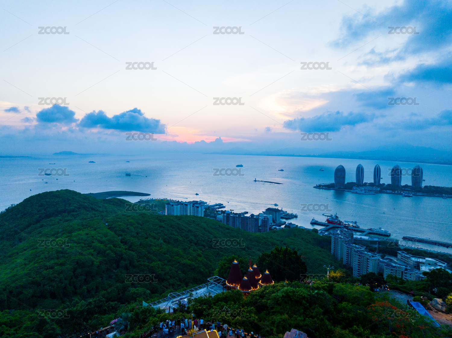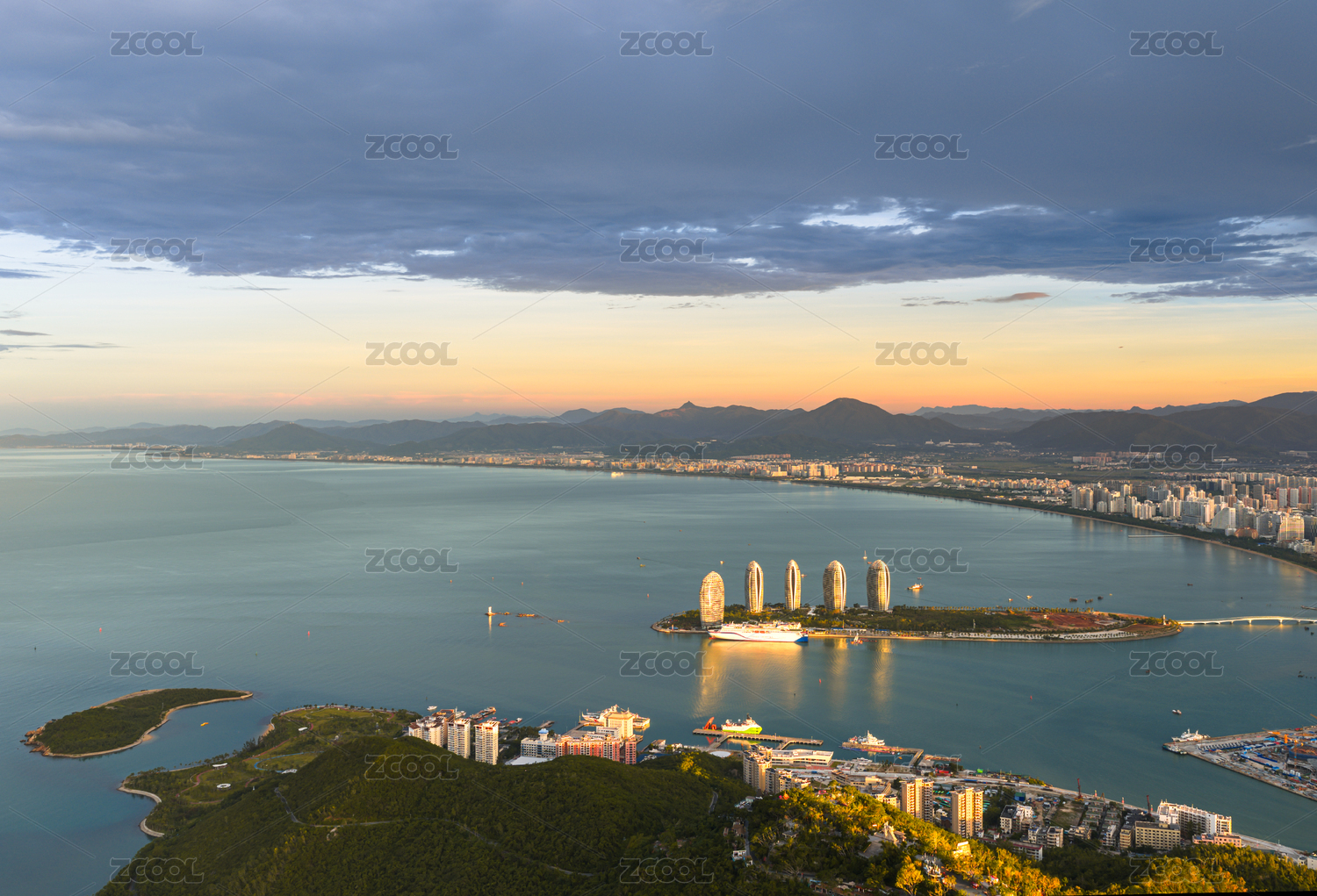 海南,三亚,鹿回头,三亚湾,全景,夏天,晴朗,海岸线,海湾,山