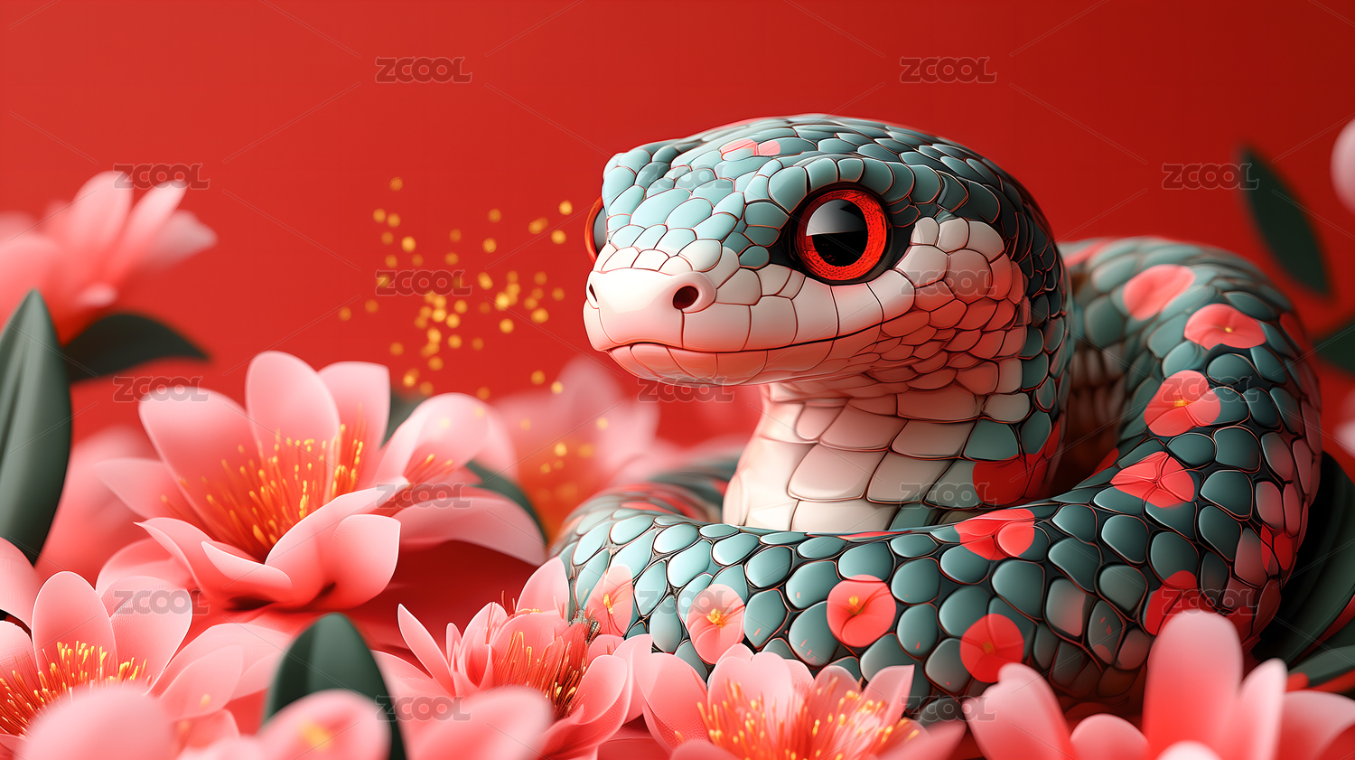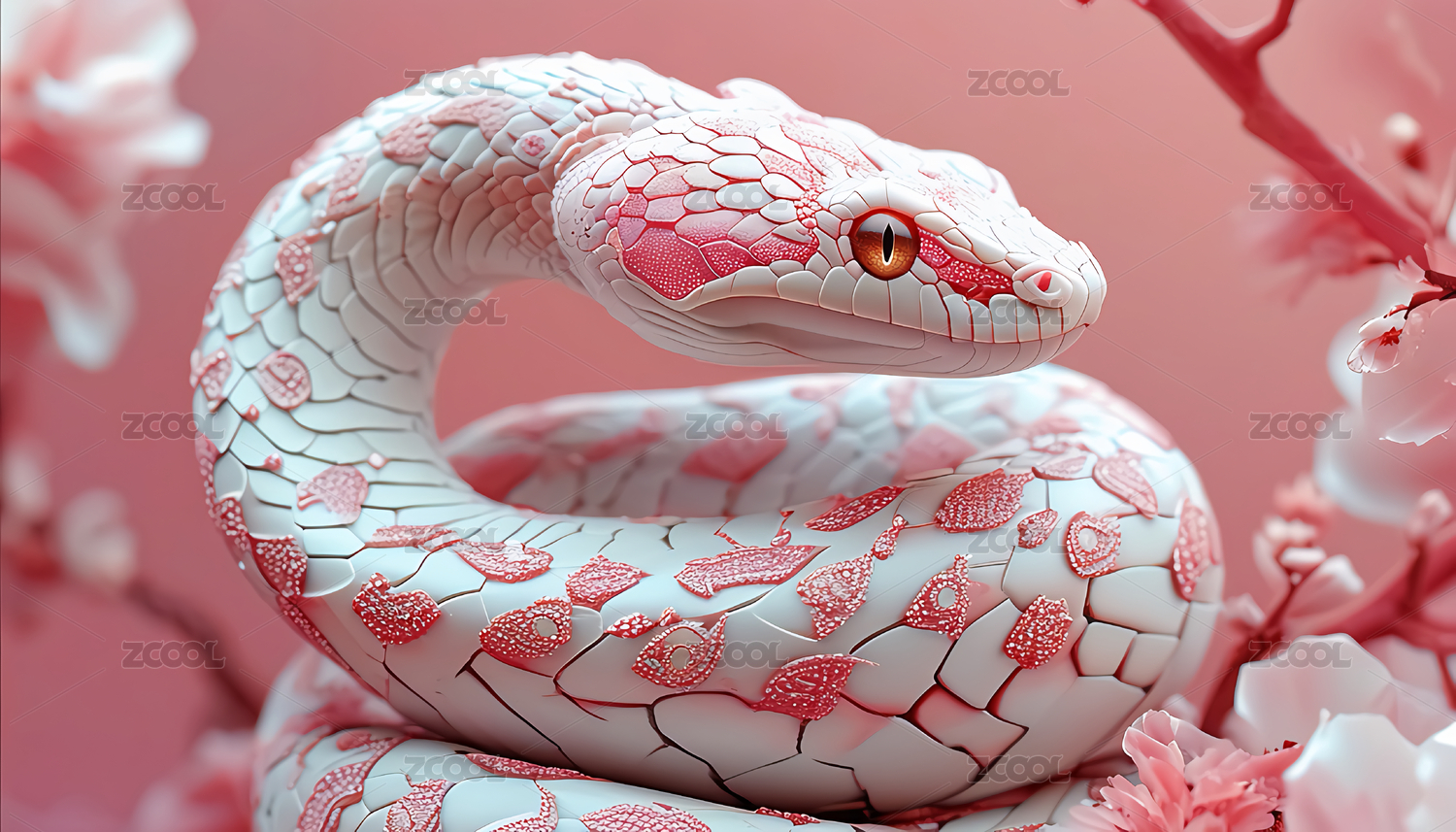 蛇,蛇年,新年,节日,粉色,白色,可爱,卡通,3D,12生肖