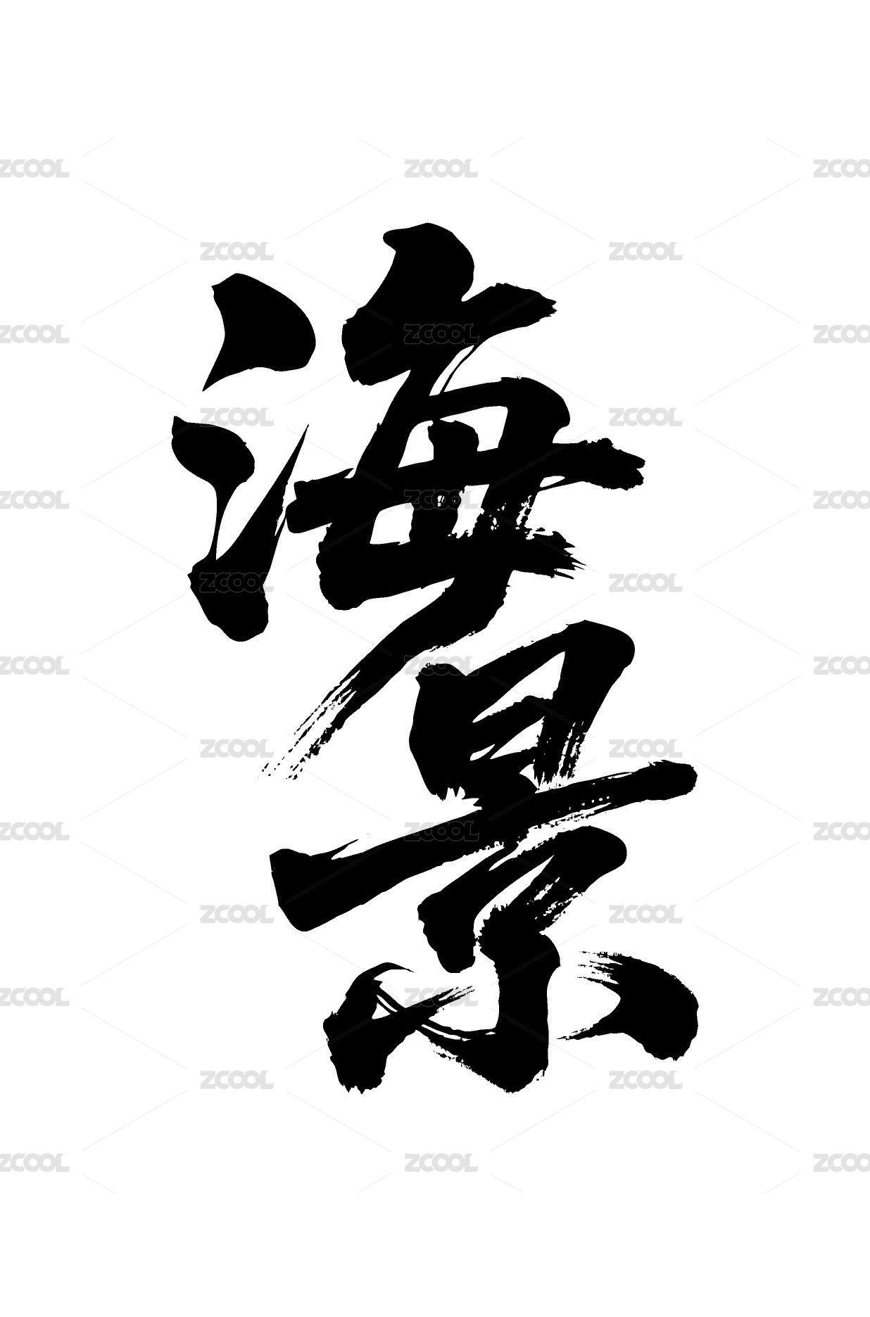 海景矢量书法手写毛笔字