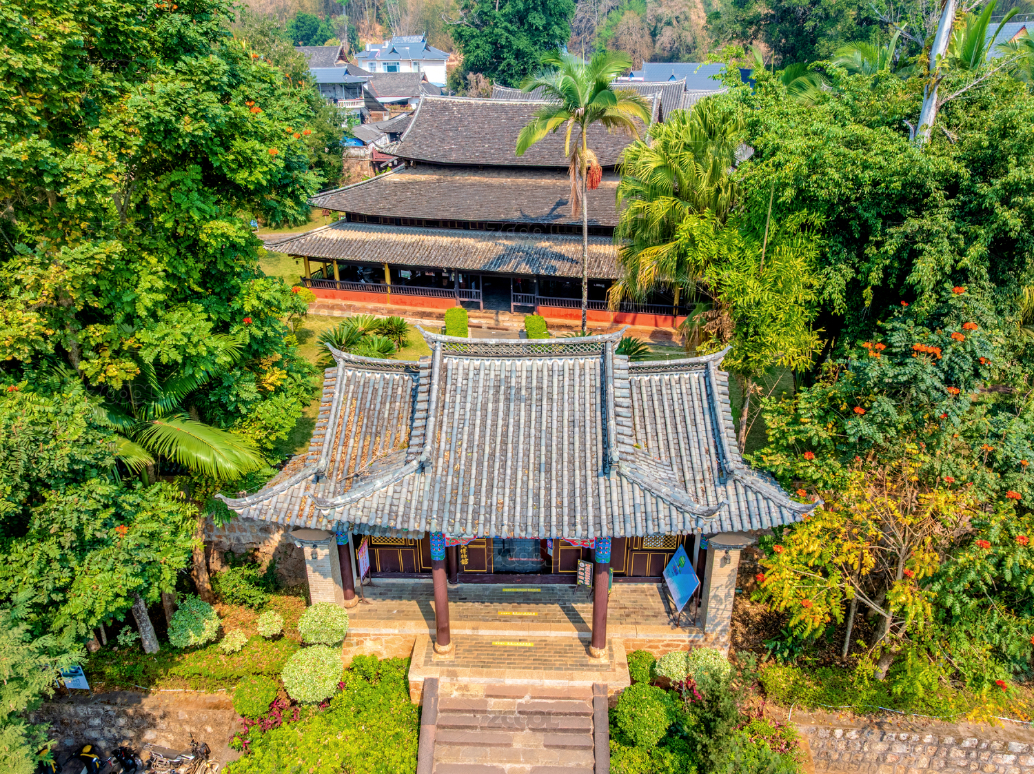 中国云南普洱娜允古镇孟连宣抚司署航拍风光