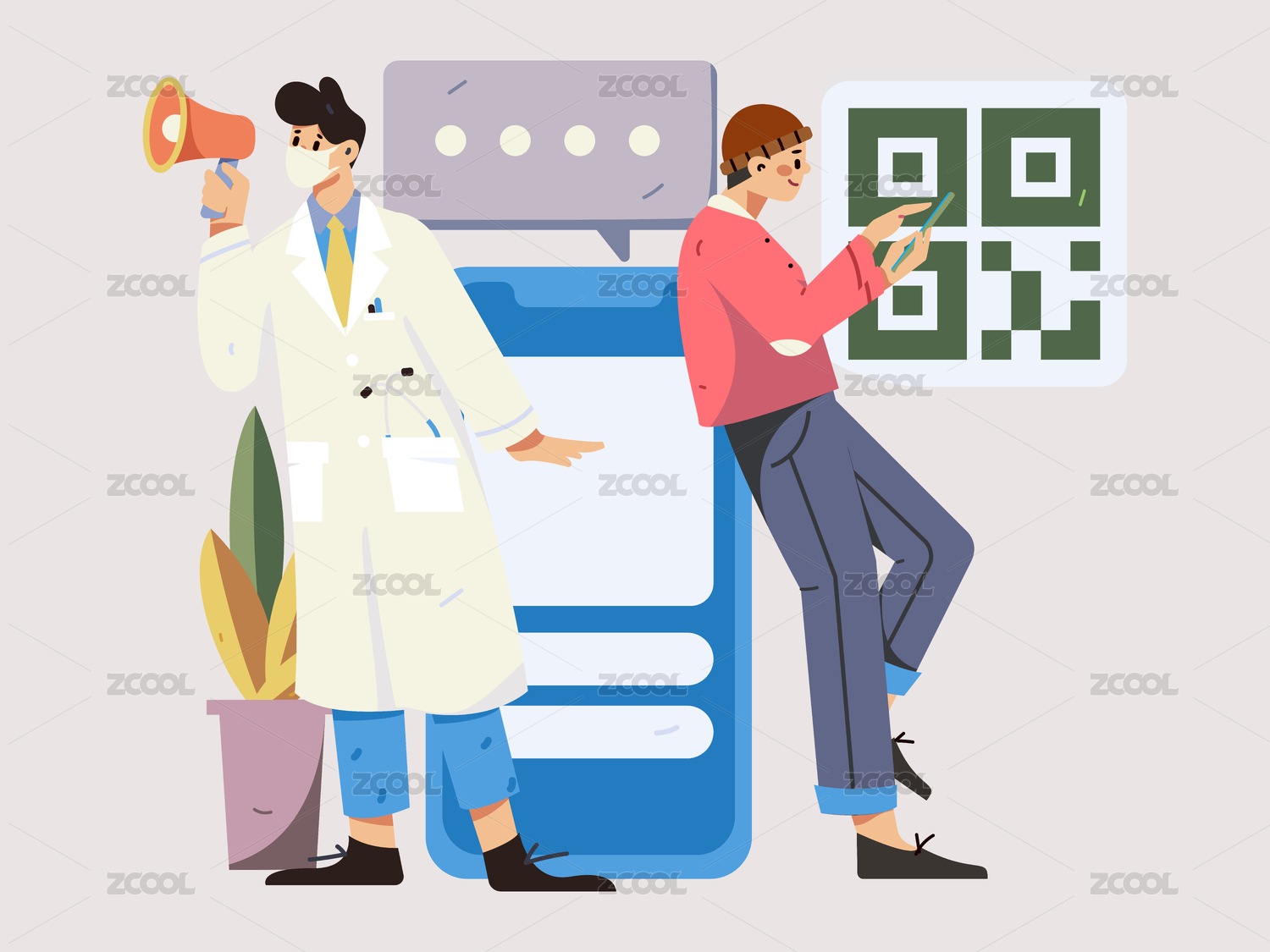 绿码医生防疫抗疫扁平矢量概念运营插画