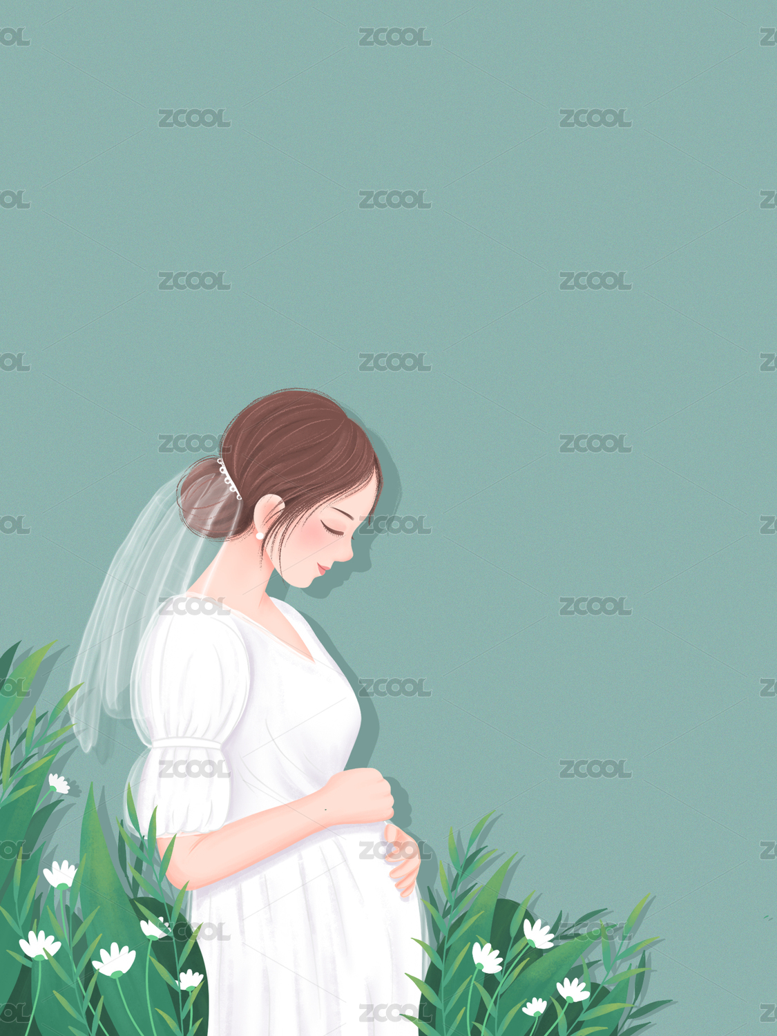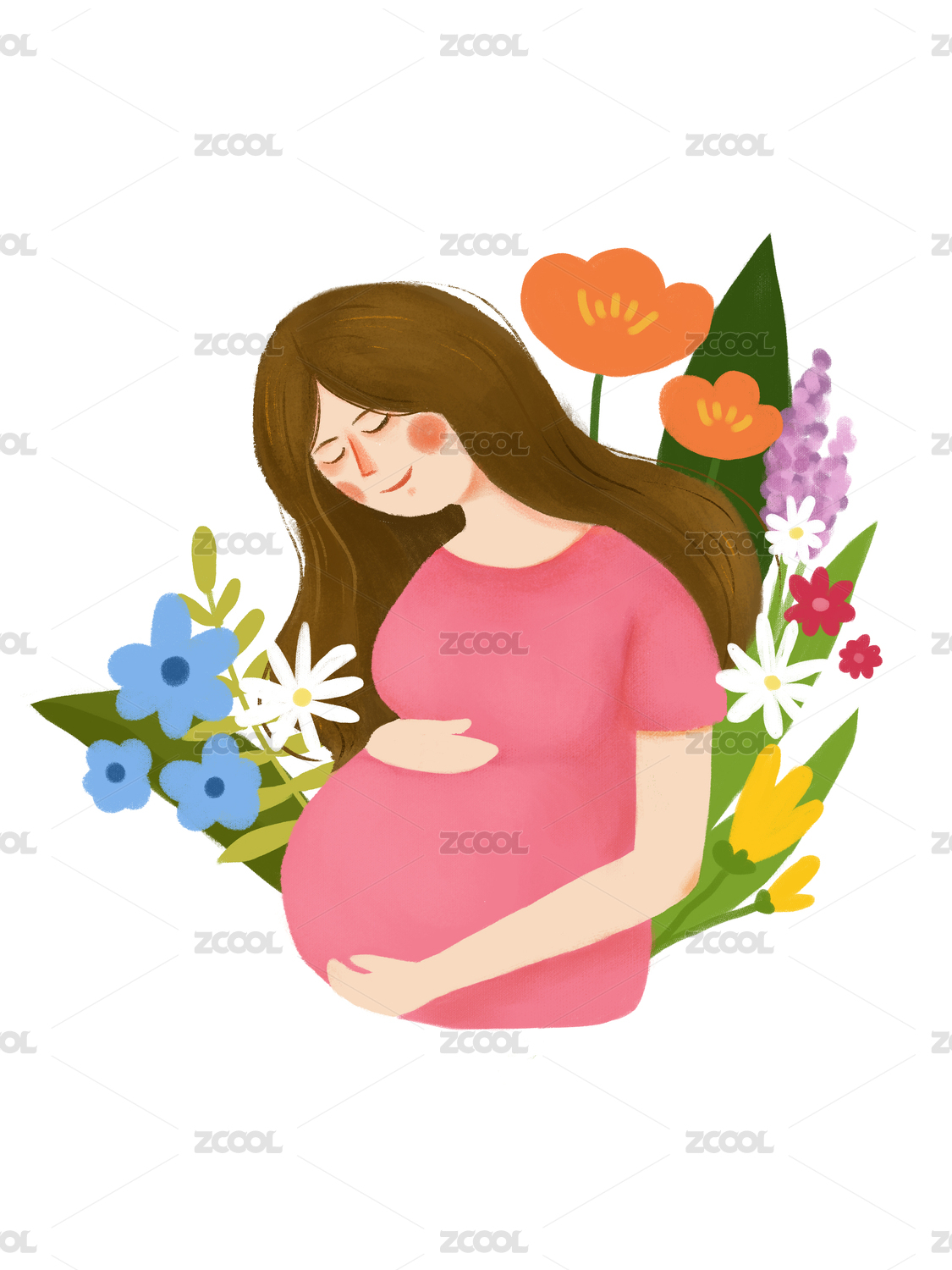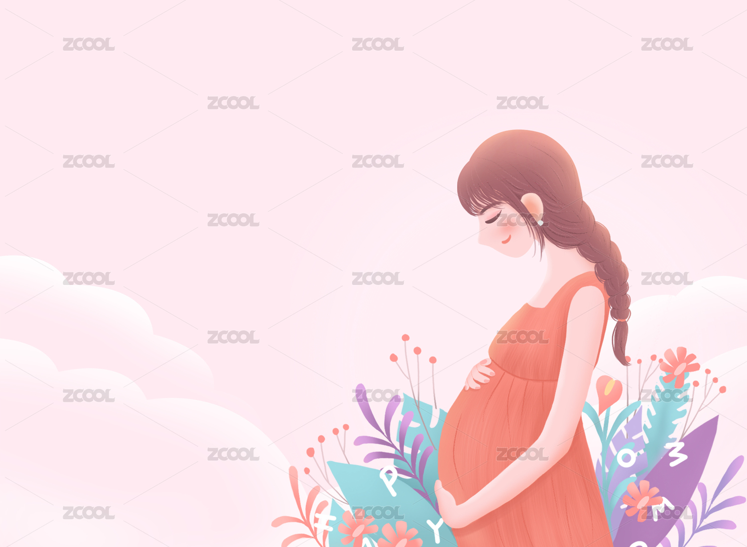 母亲节快乐孕妇妈妈儿童人物矢量插画海报