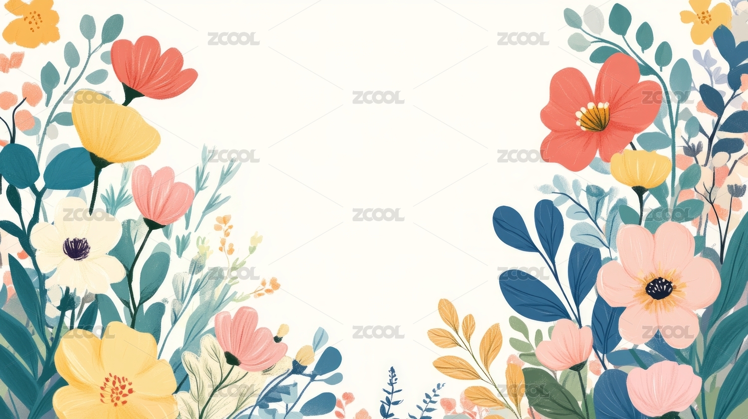 平面插画鲜花植物边框背景