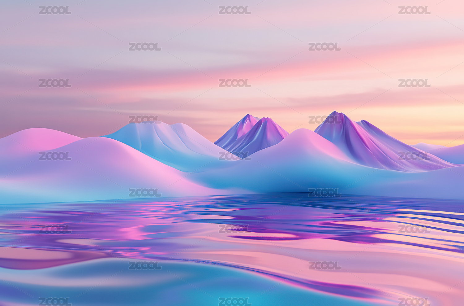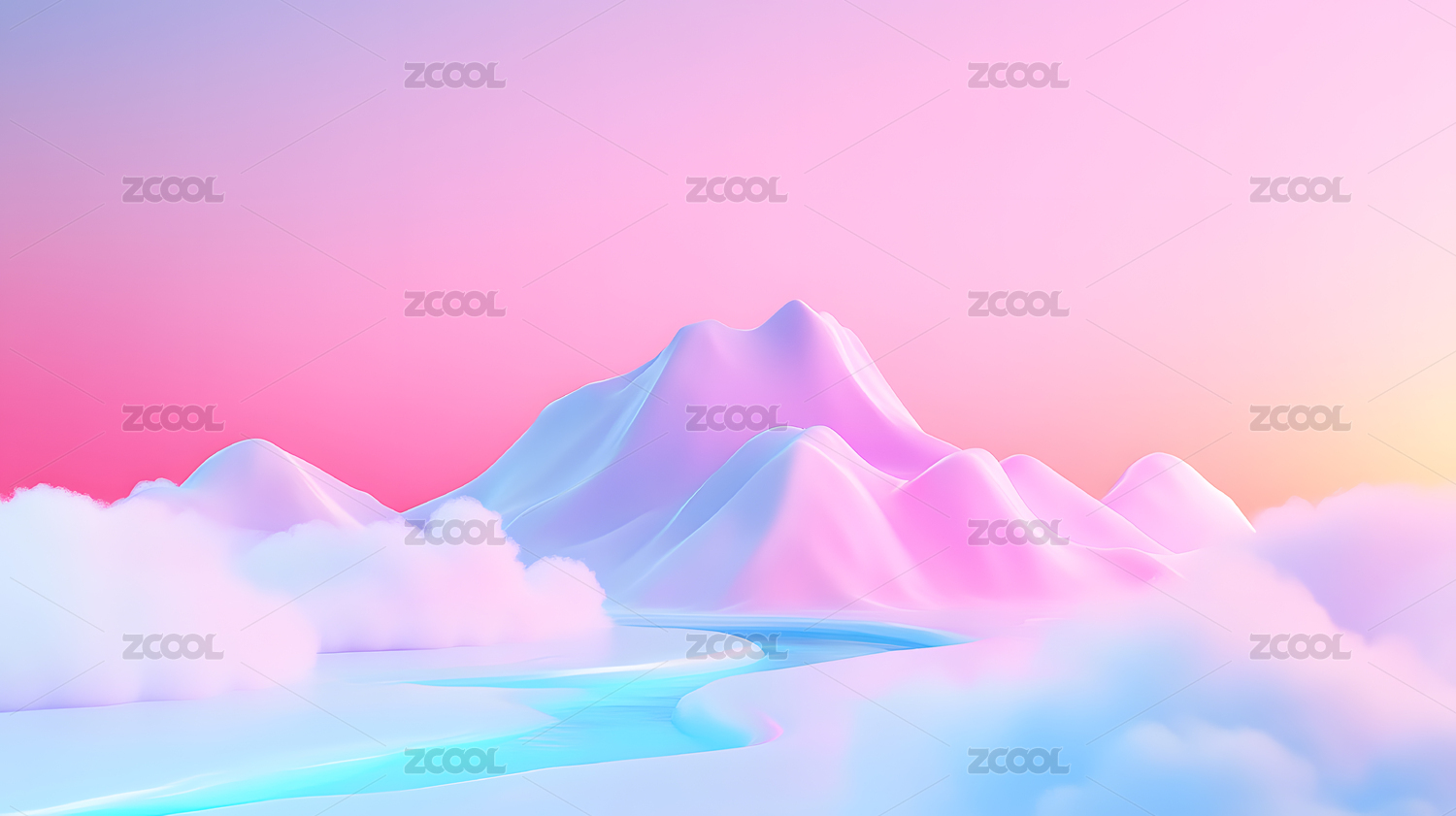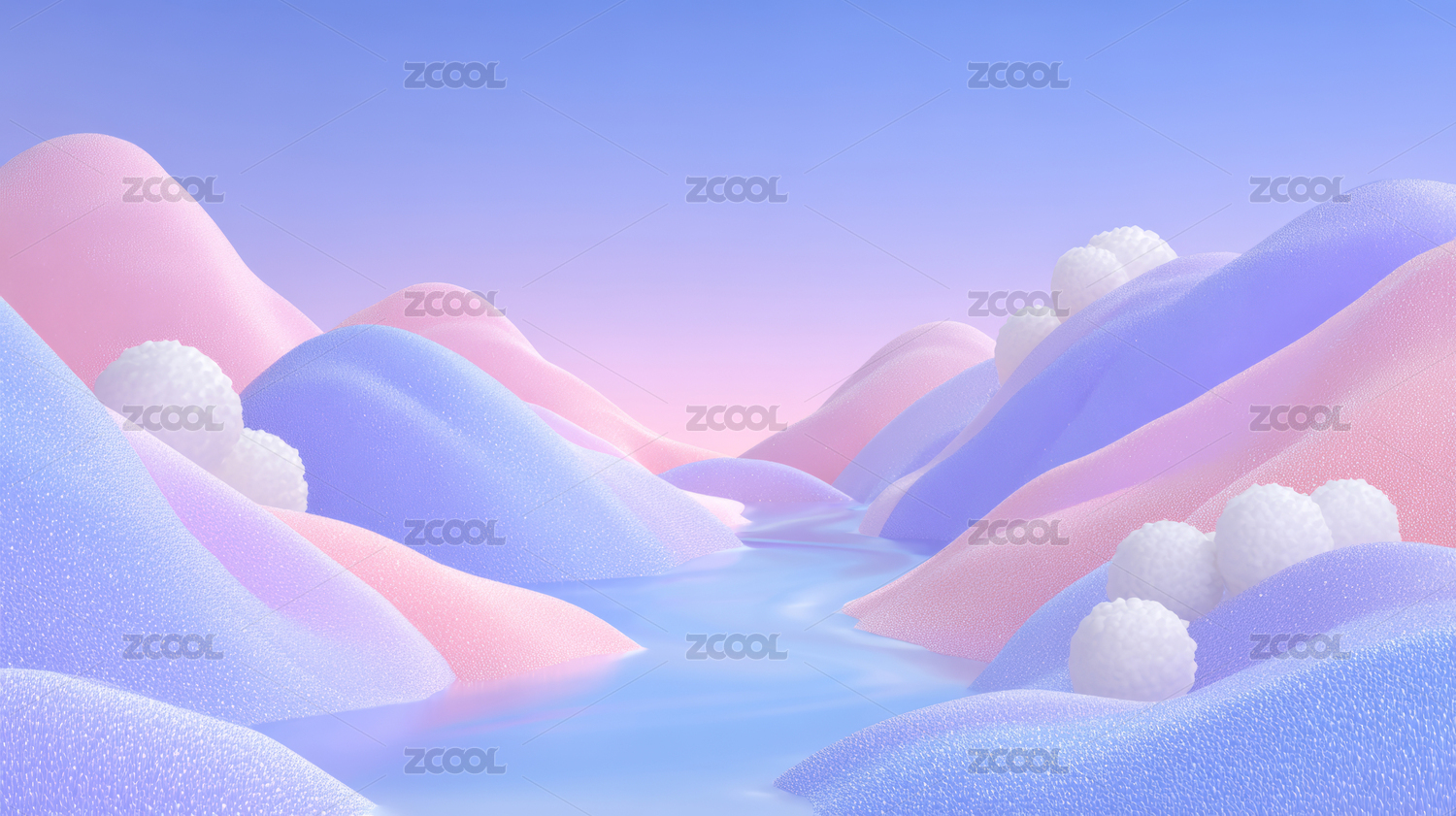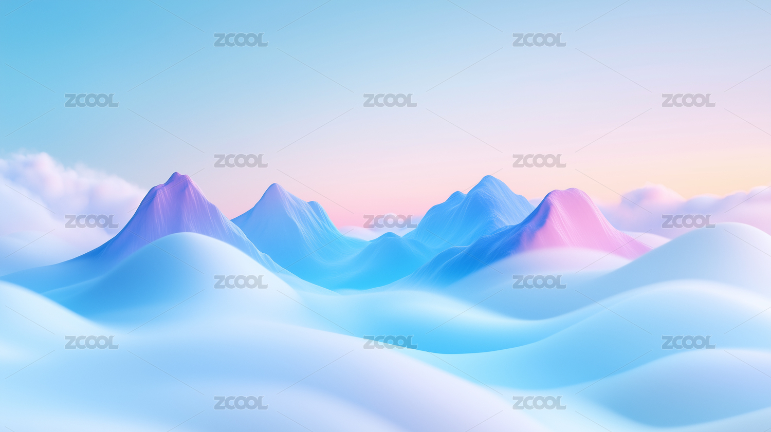 粉蓝色调的抽象山丘景观