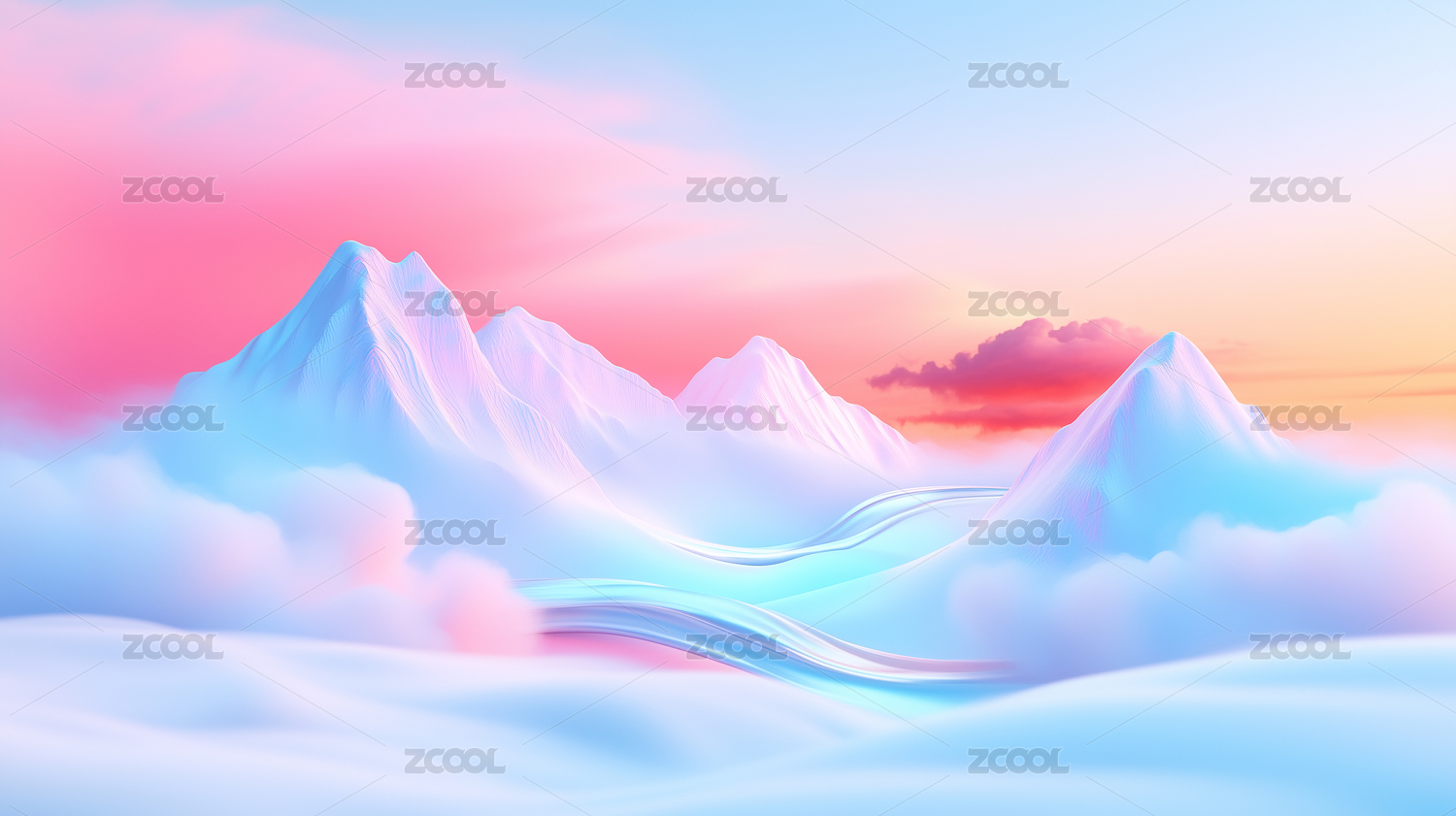 梦幻山峦与云海的渐变色彩