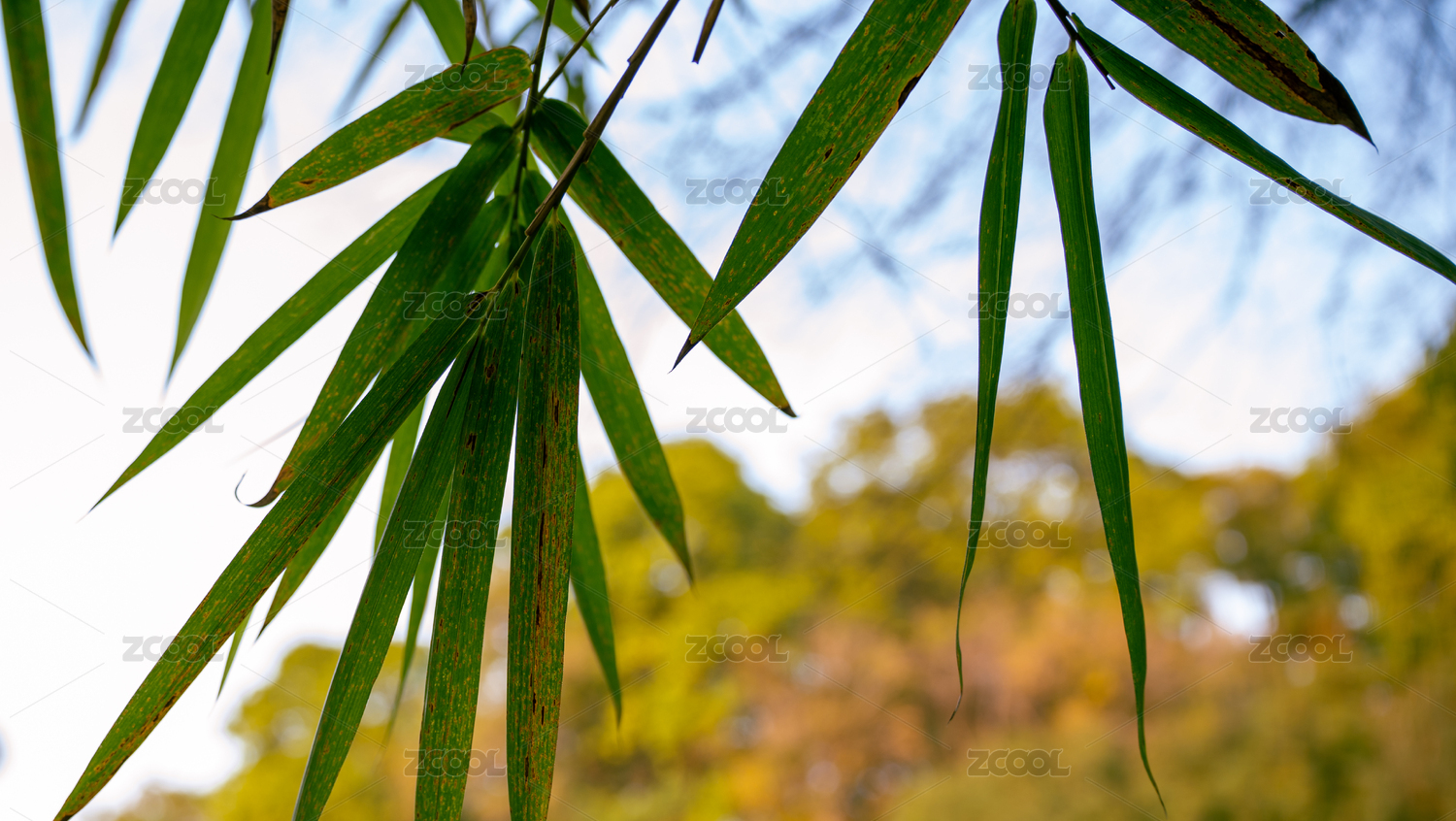 亚洲秋季室外自然绿色的竹子与竹叶