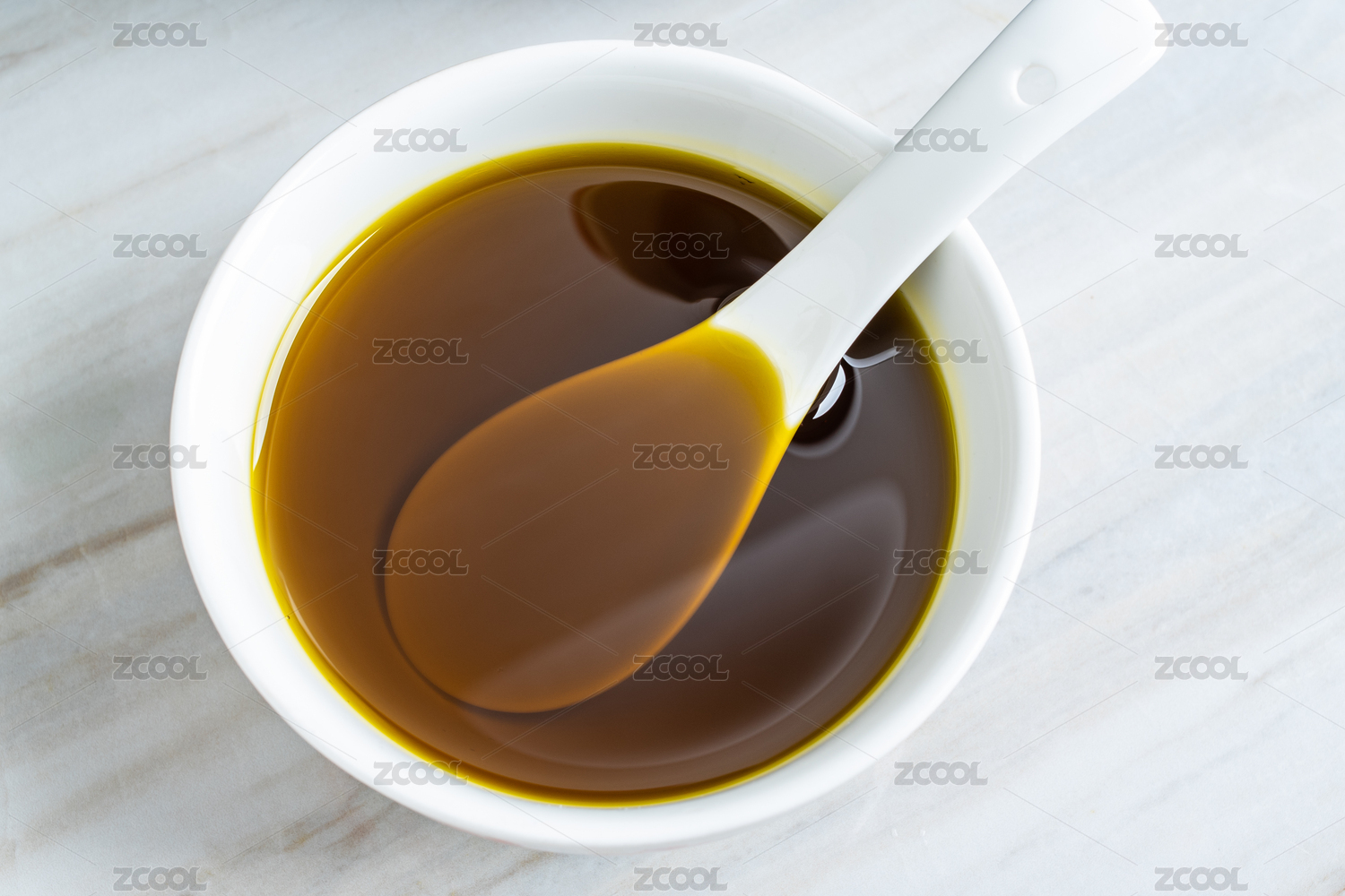 厨房台面上一碗金黄色的食用植物油菜籽油