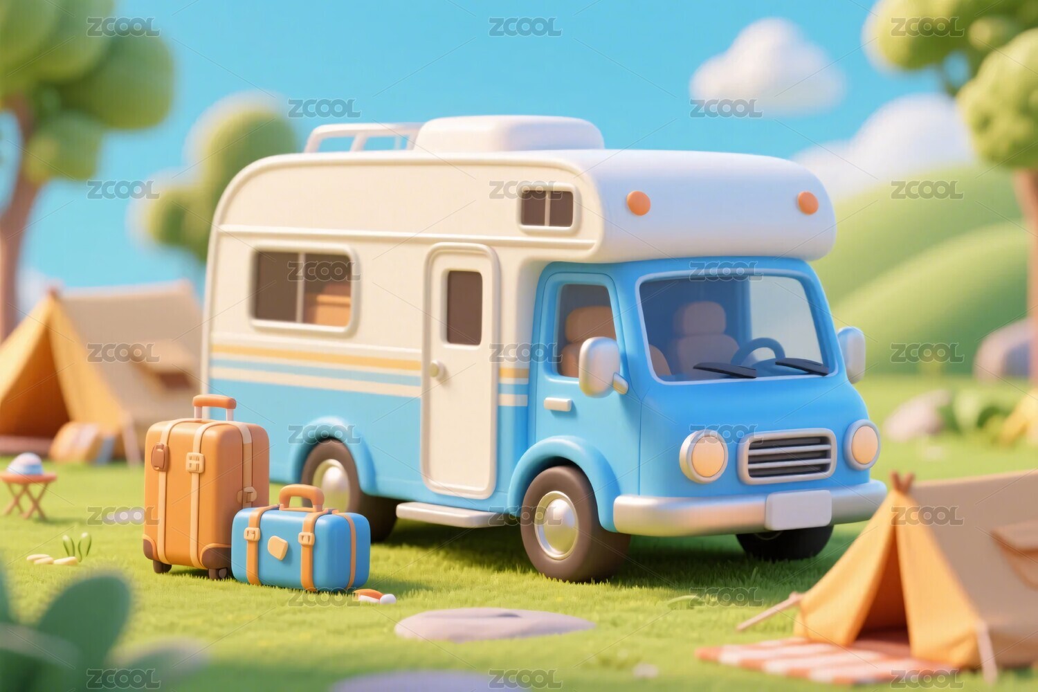 AIGC202404,汽车,露营,旅行,度假,公路,树,植物,风景,自然