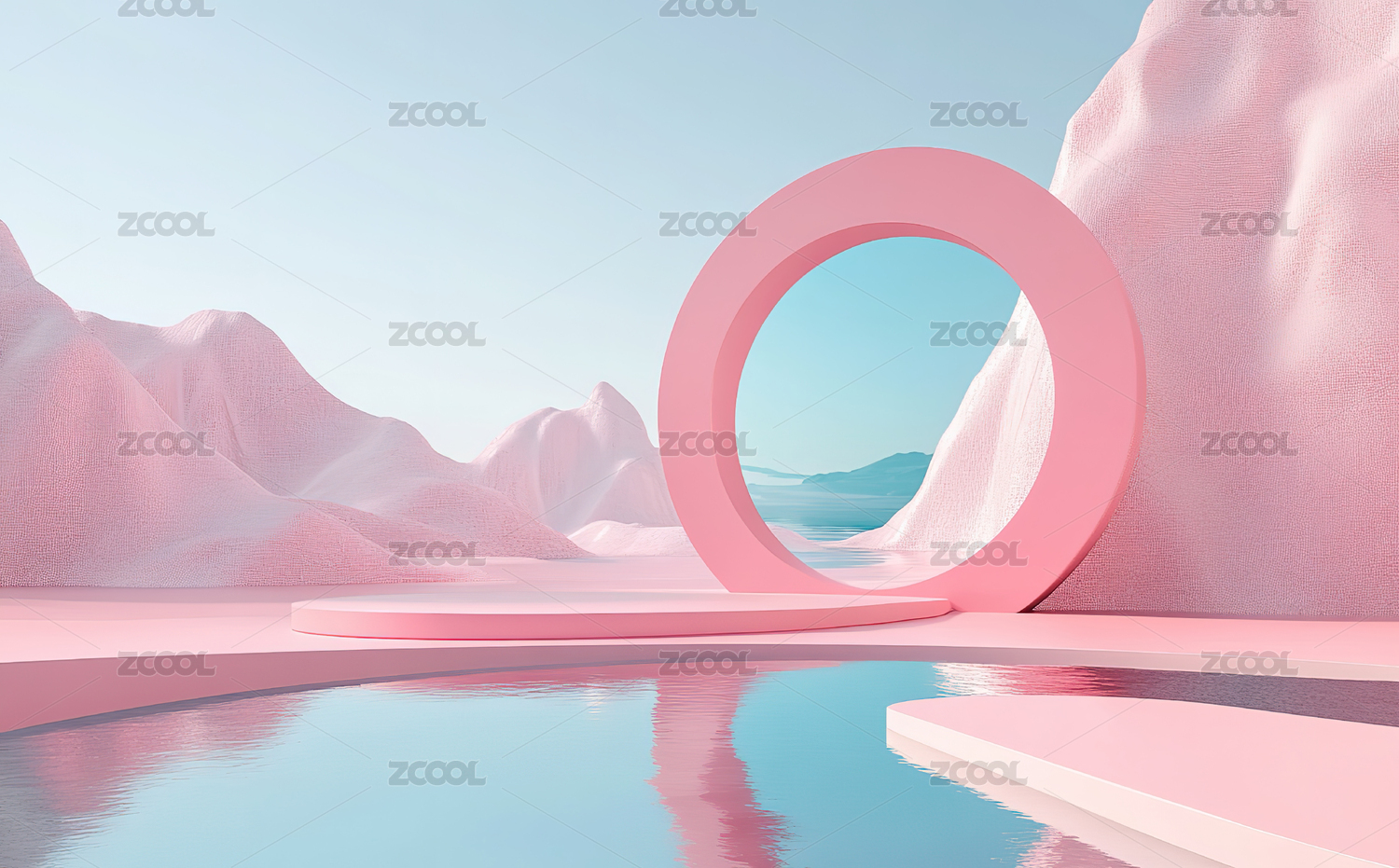 电商,展台,展示台,背景,产品,广告,山水,湖面,海,极简