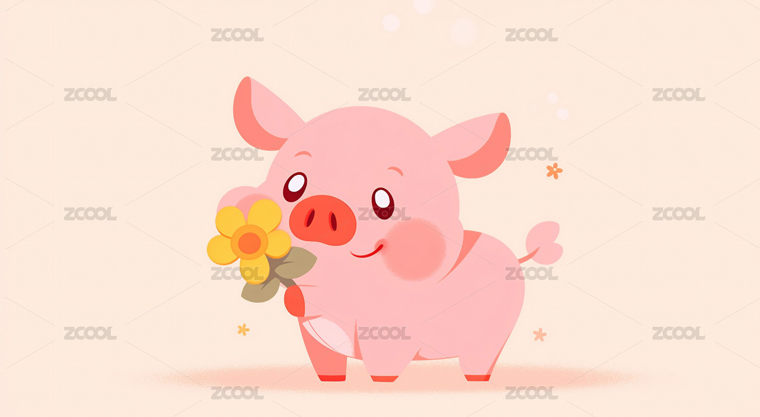 动物,生肖,山丘,植物,自然,田野,抽象,点元素,插画,可爱