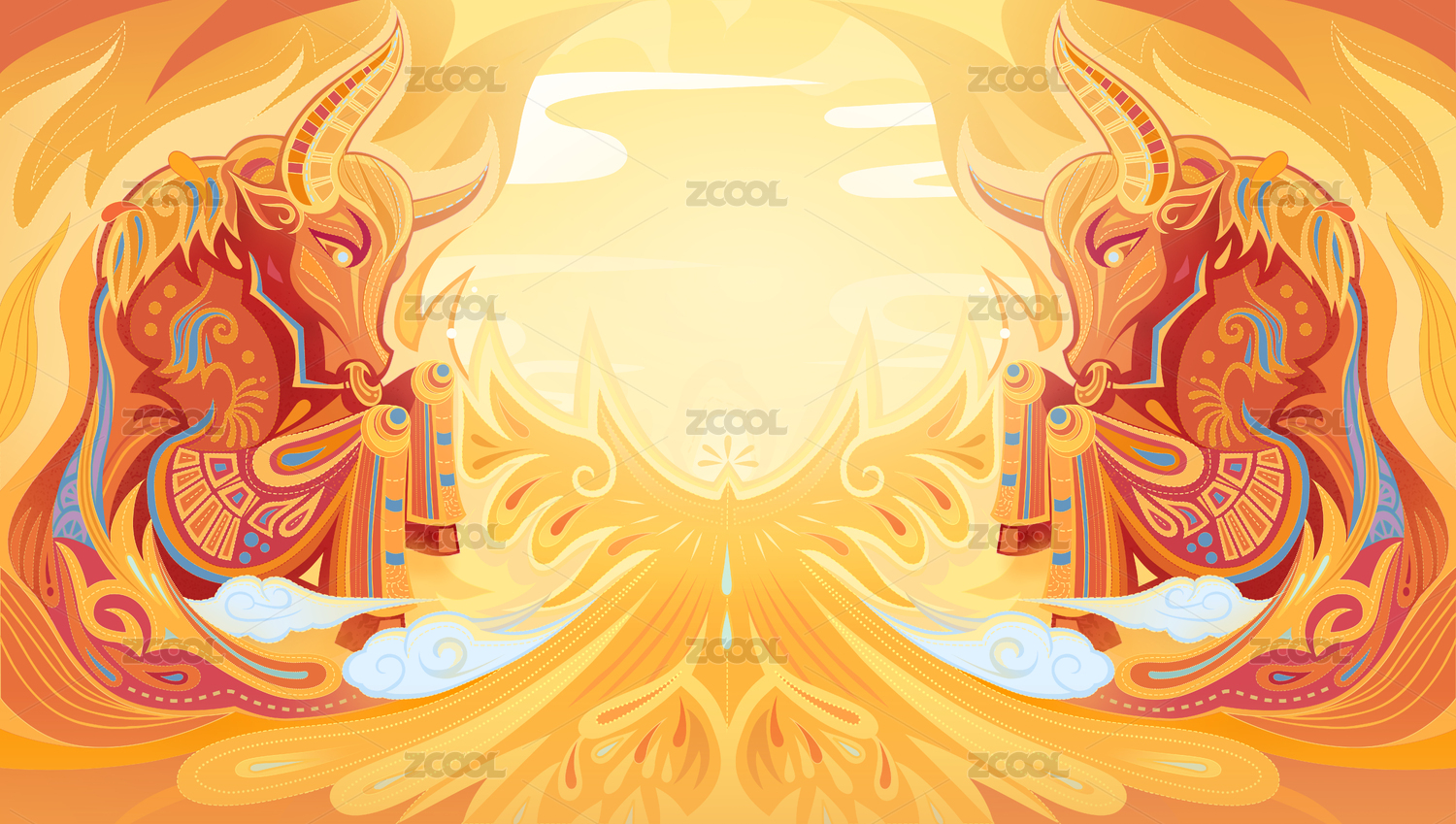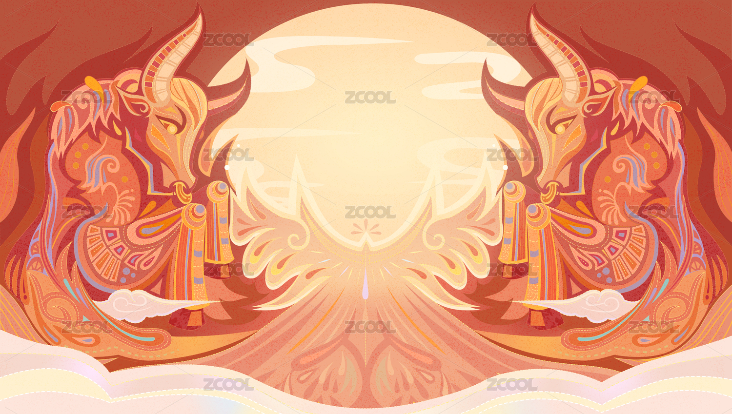 牛年,过年,插画,牛,HEZODIAC2021,新年,中国风,国潮,海报