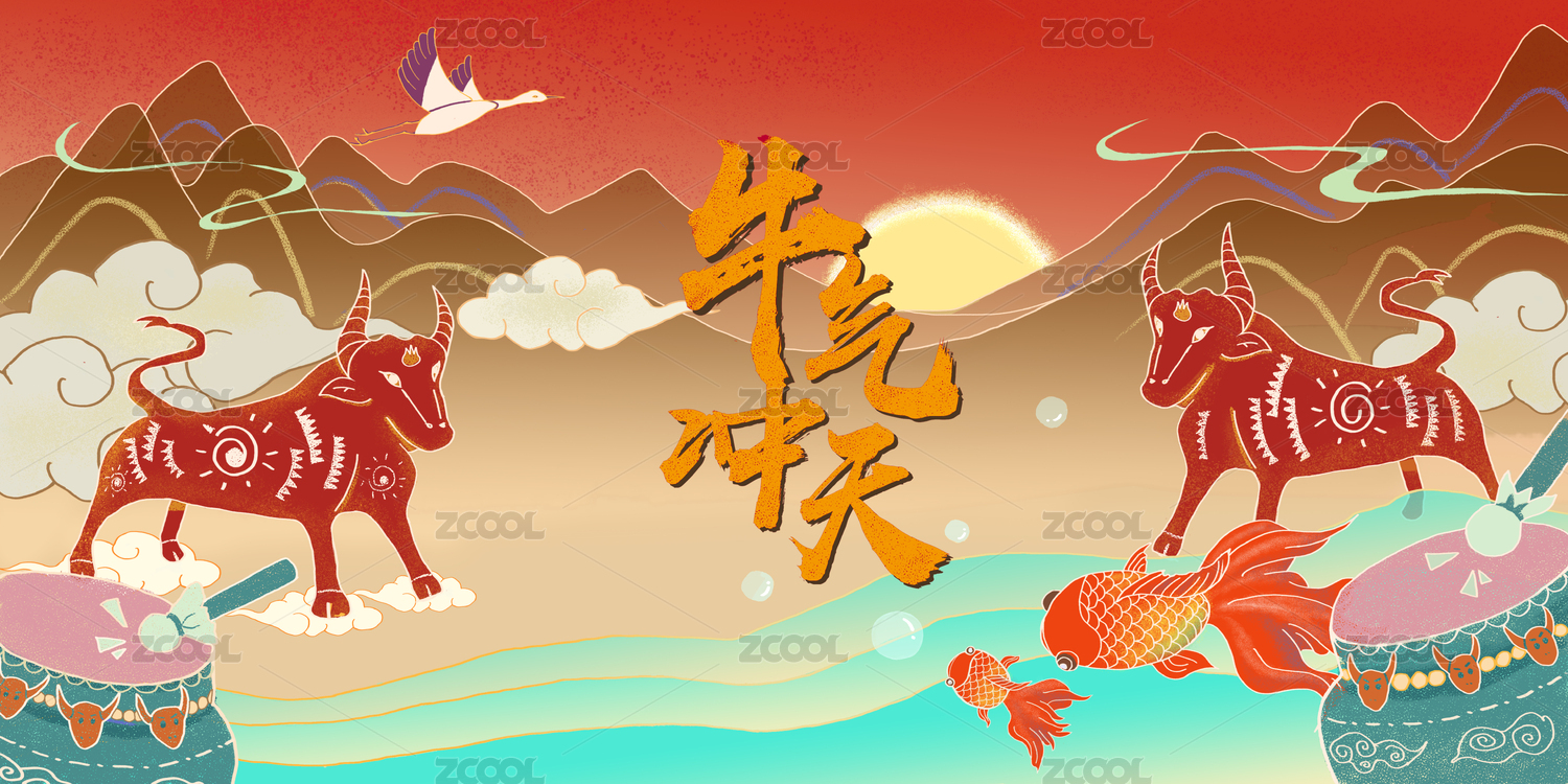 国潮风格牛年
