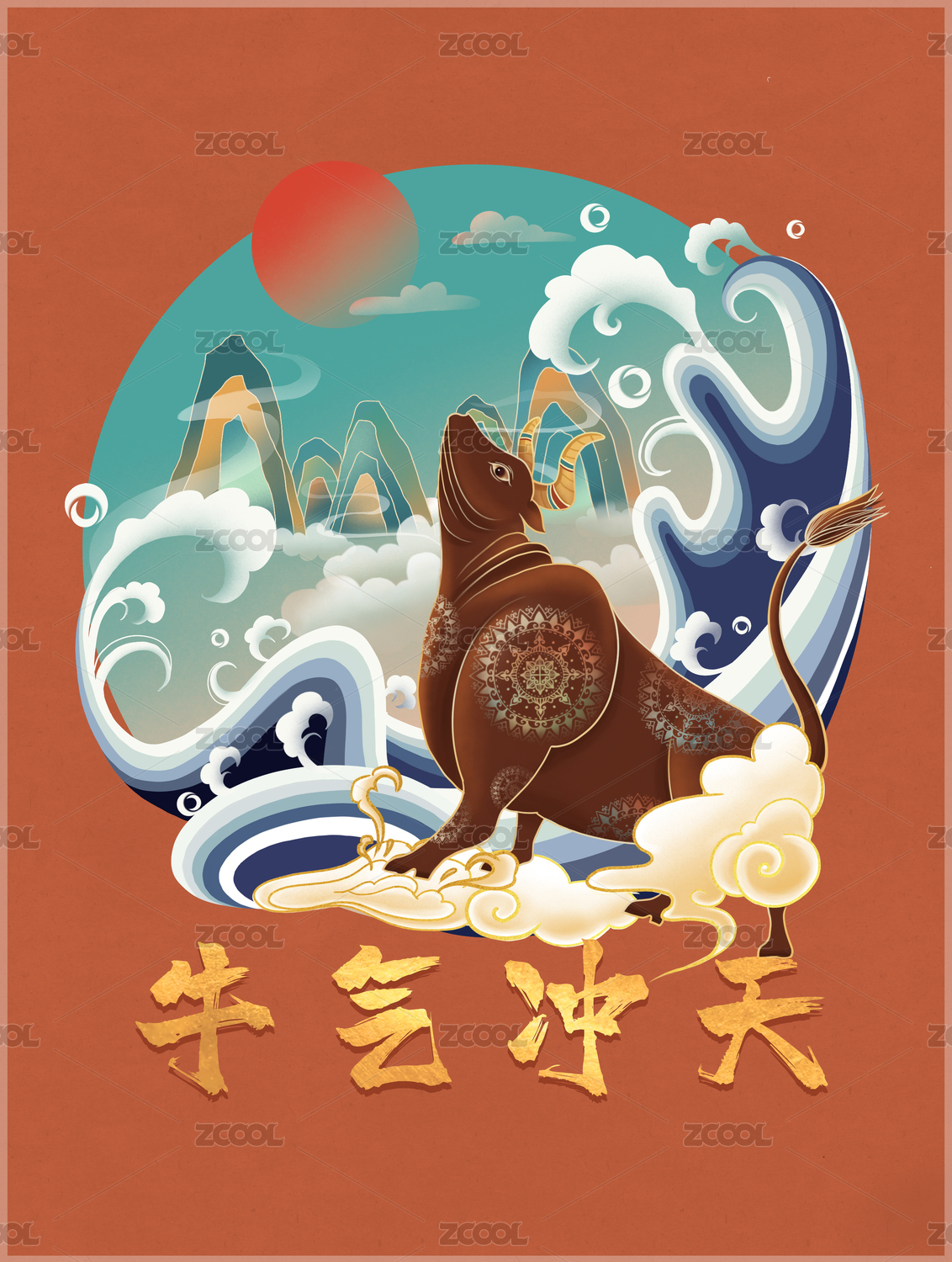牛气冲天插画