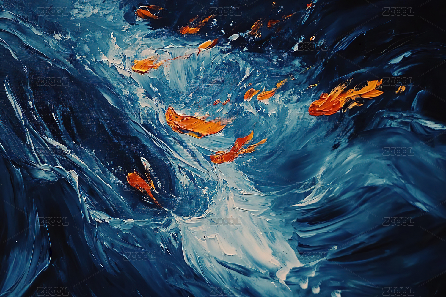 深海鱼群的油画