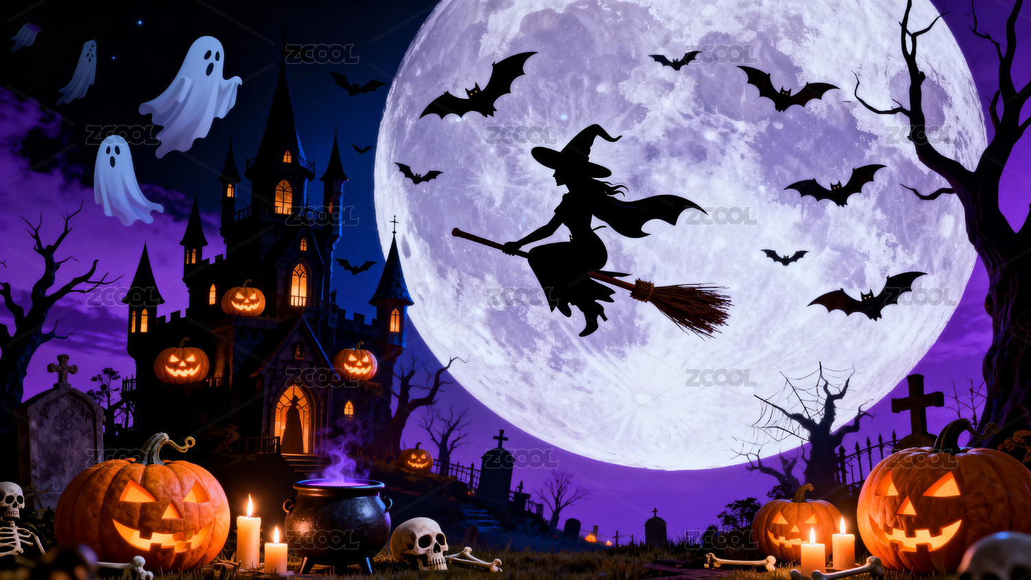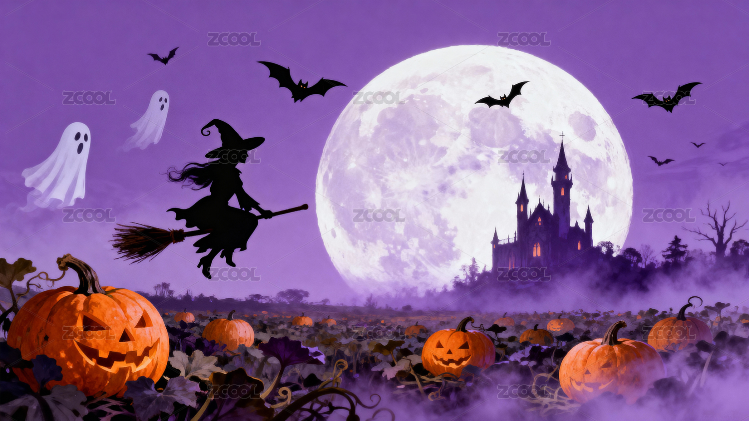 万圣节海报背景宣传图片南瓜灯城堡黑暗森林