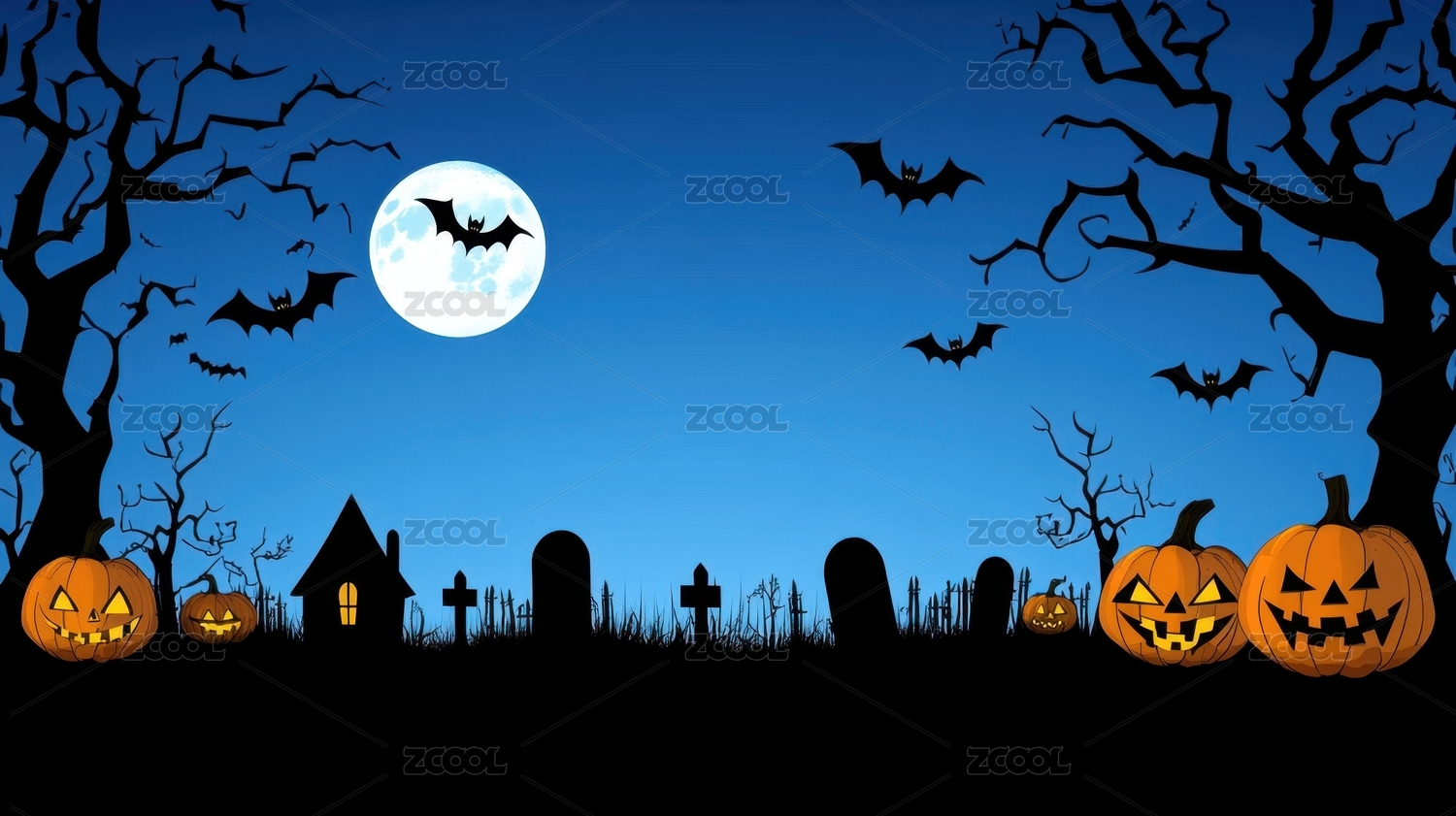 万圣节南瓜和蝙蝠的恐怖夜晚