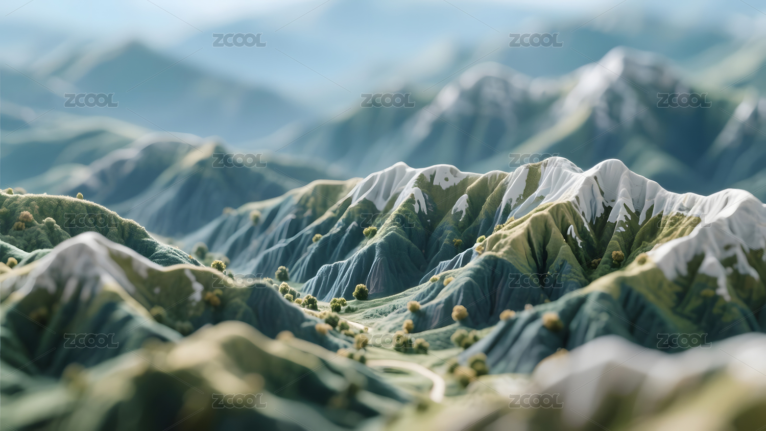 3D渲染山丘山脉高山大山山峰数字艺术插画