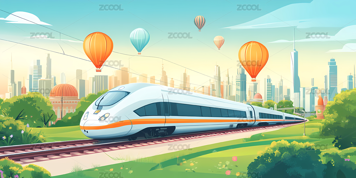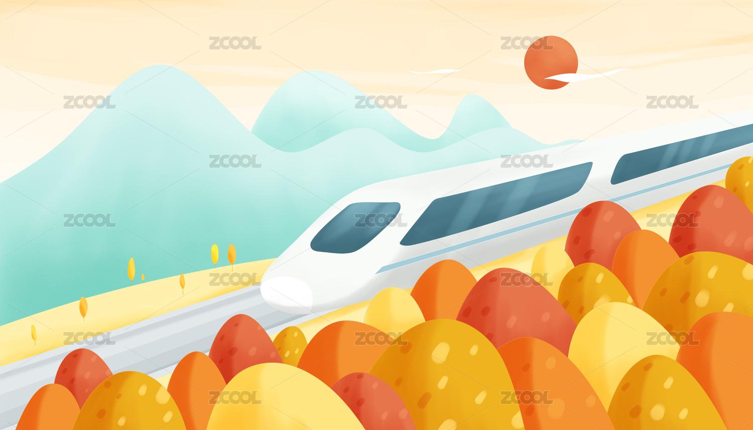 卡通手绘春运火车高铁动车春节返乡回家插画