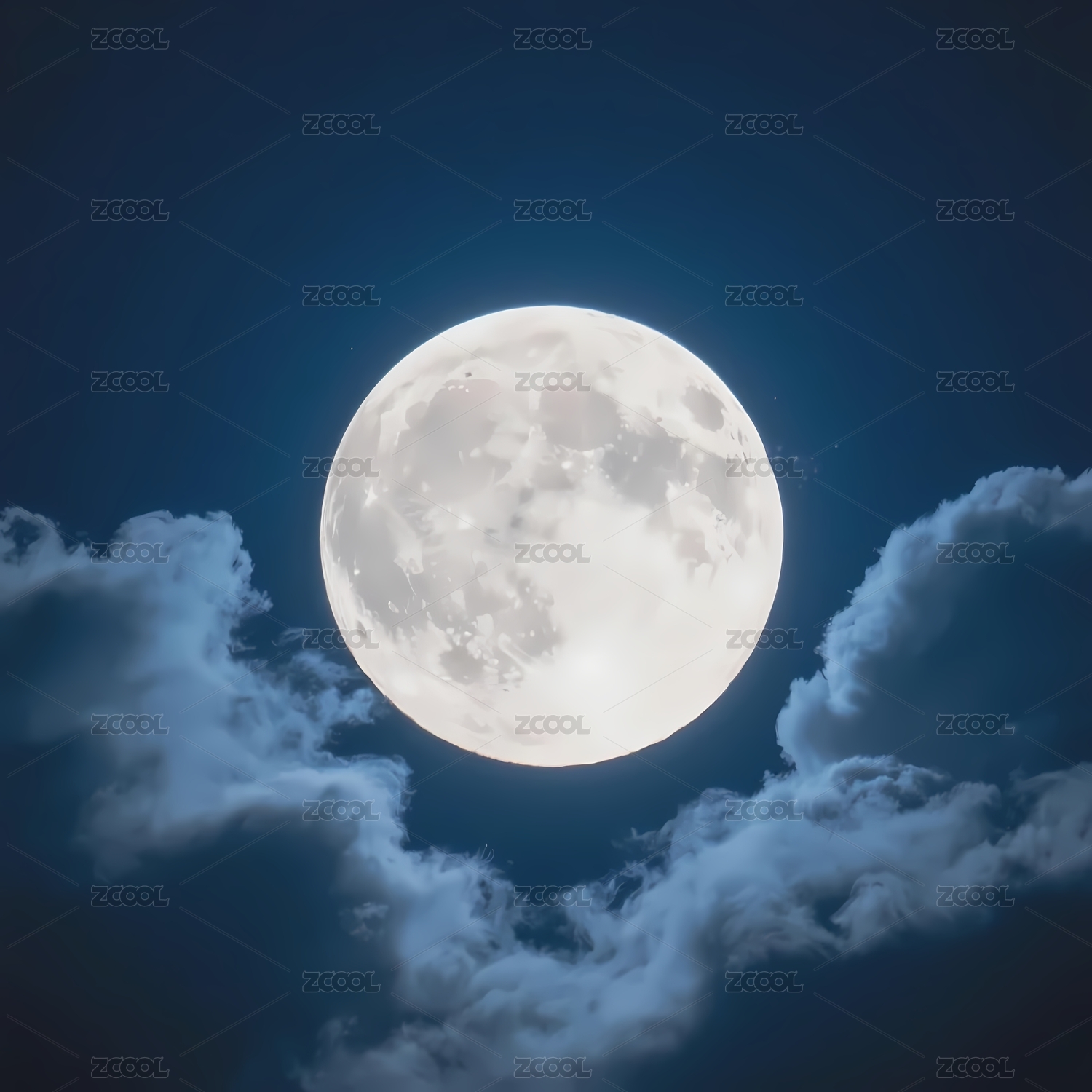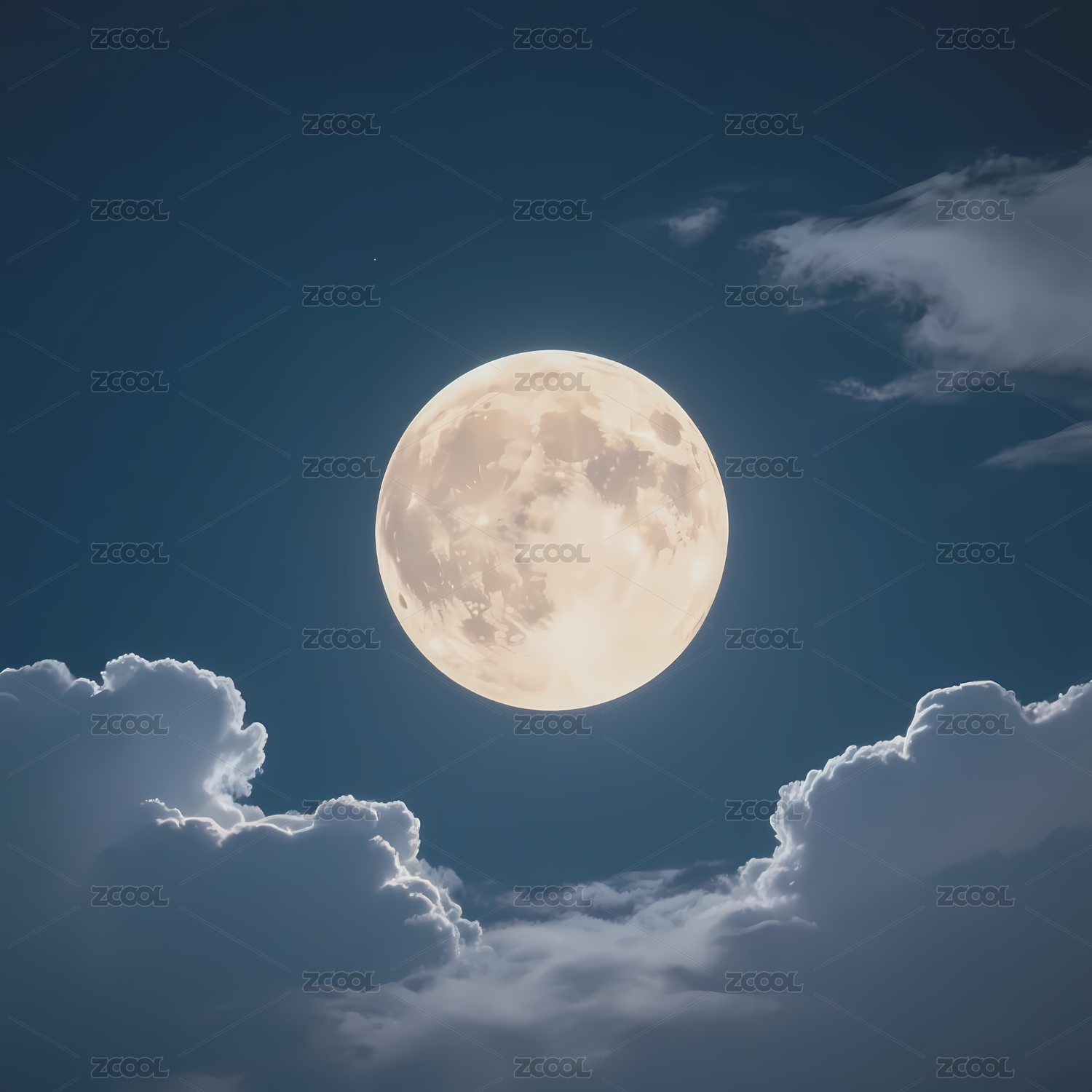 满月高悬于夜空云层间