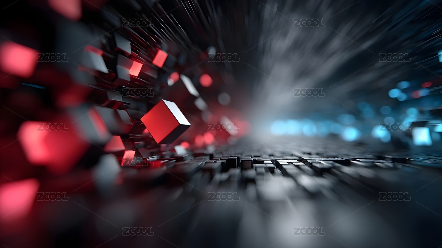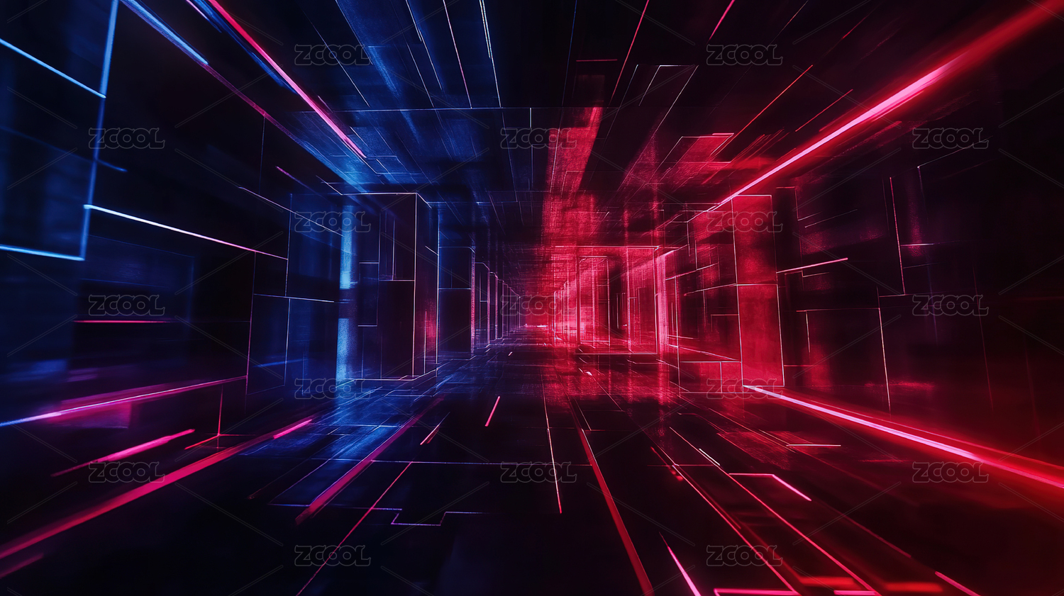 蓝红概念科技立方体发光隧道背景