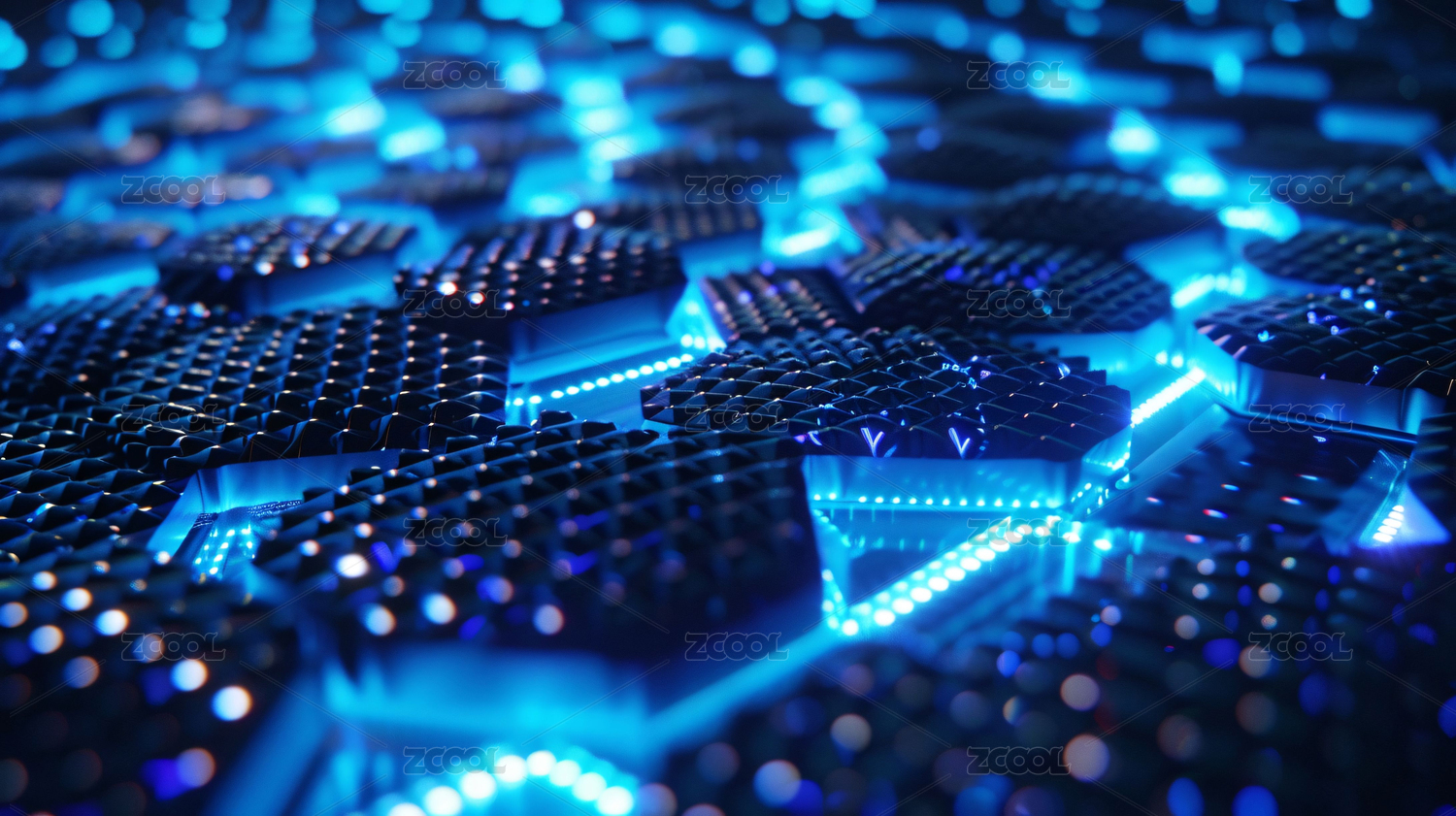 蓝色六边形框架背景设计,3D渲染的灯光科