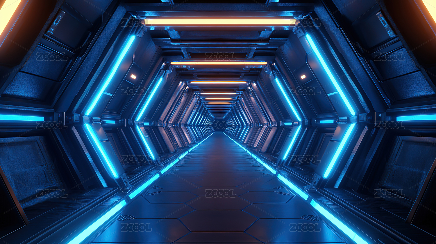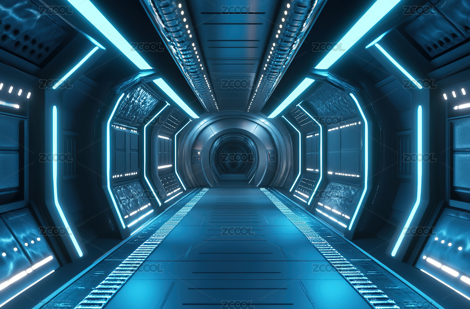 蓝色科幻飞船内部通道