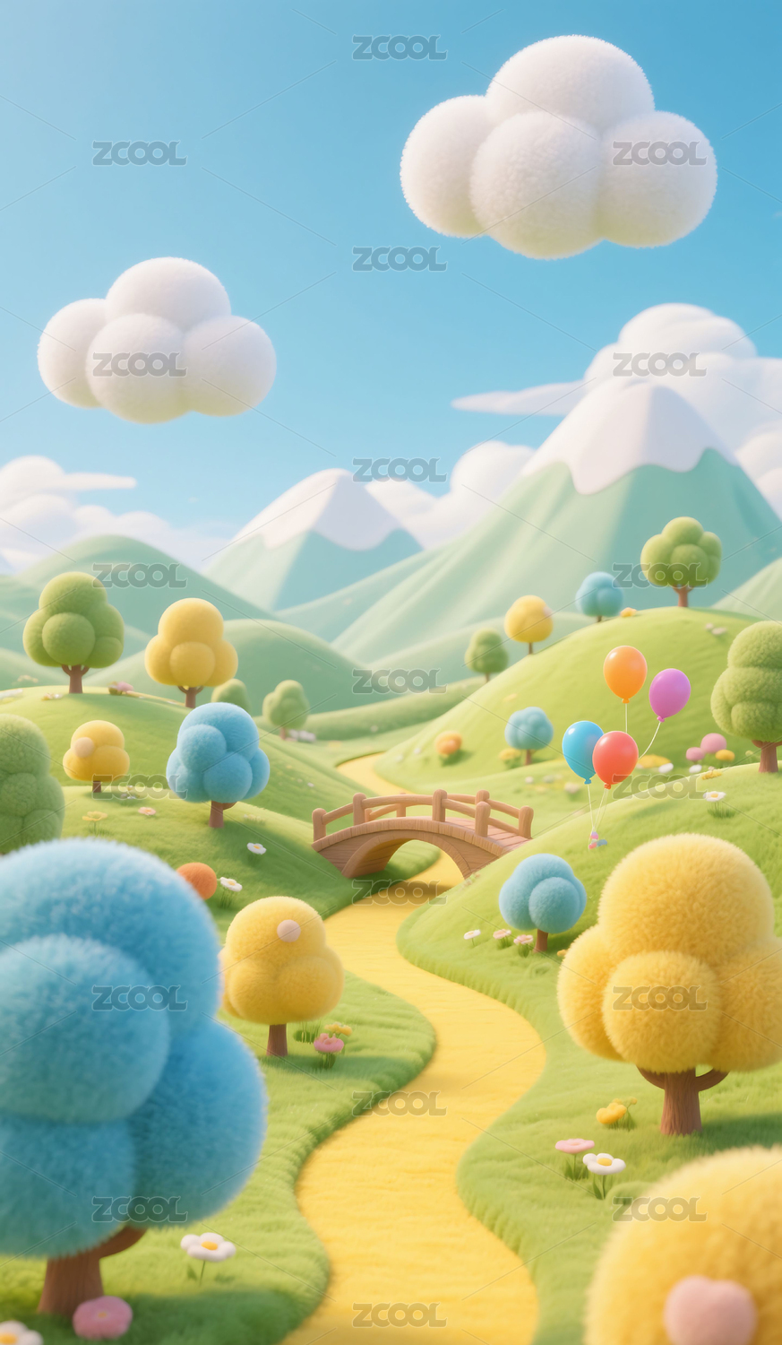 3D羊毛毡毛绒绒自然户外卡通场景背景