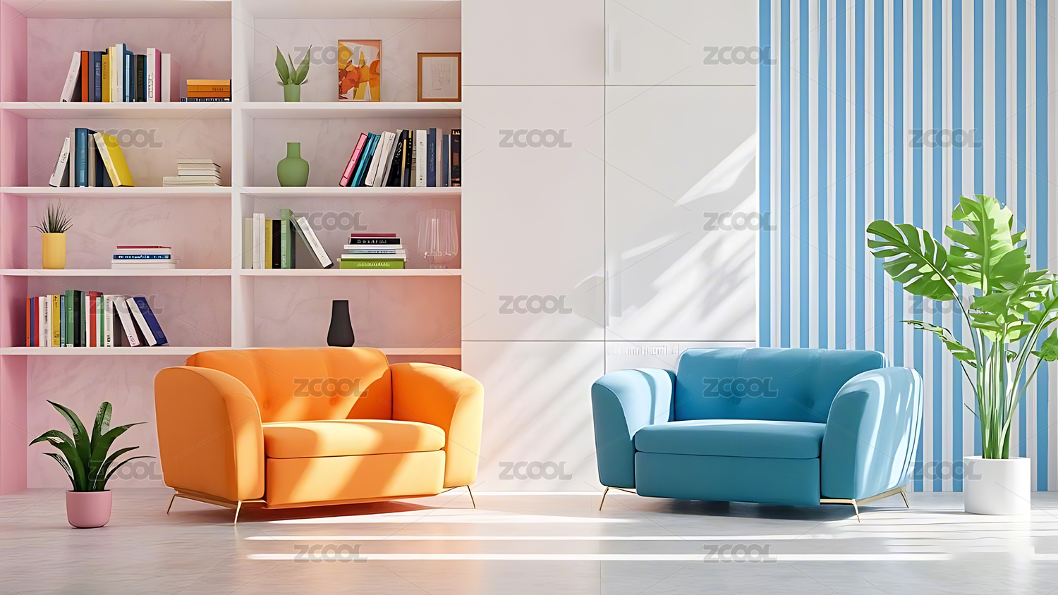 3D风格,背景,艺术,壁纸,插画,插图,室内,房子,别墅,沙发
