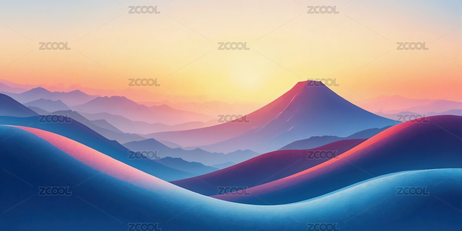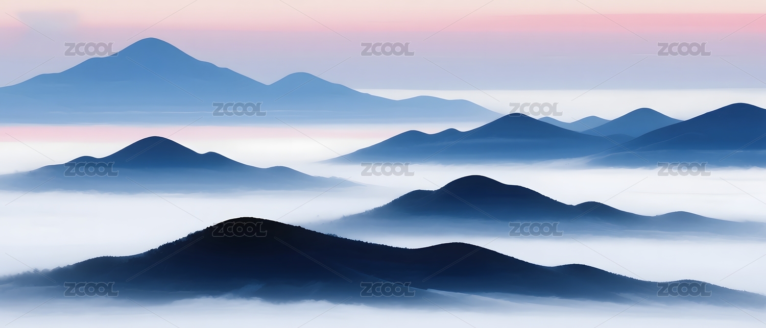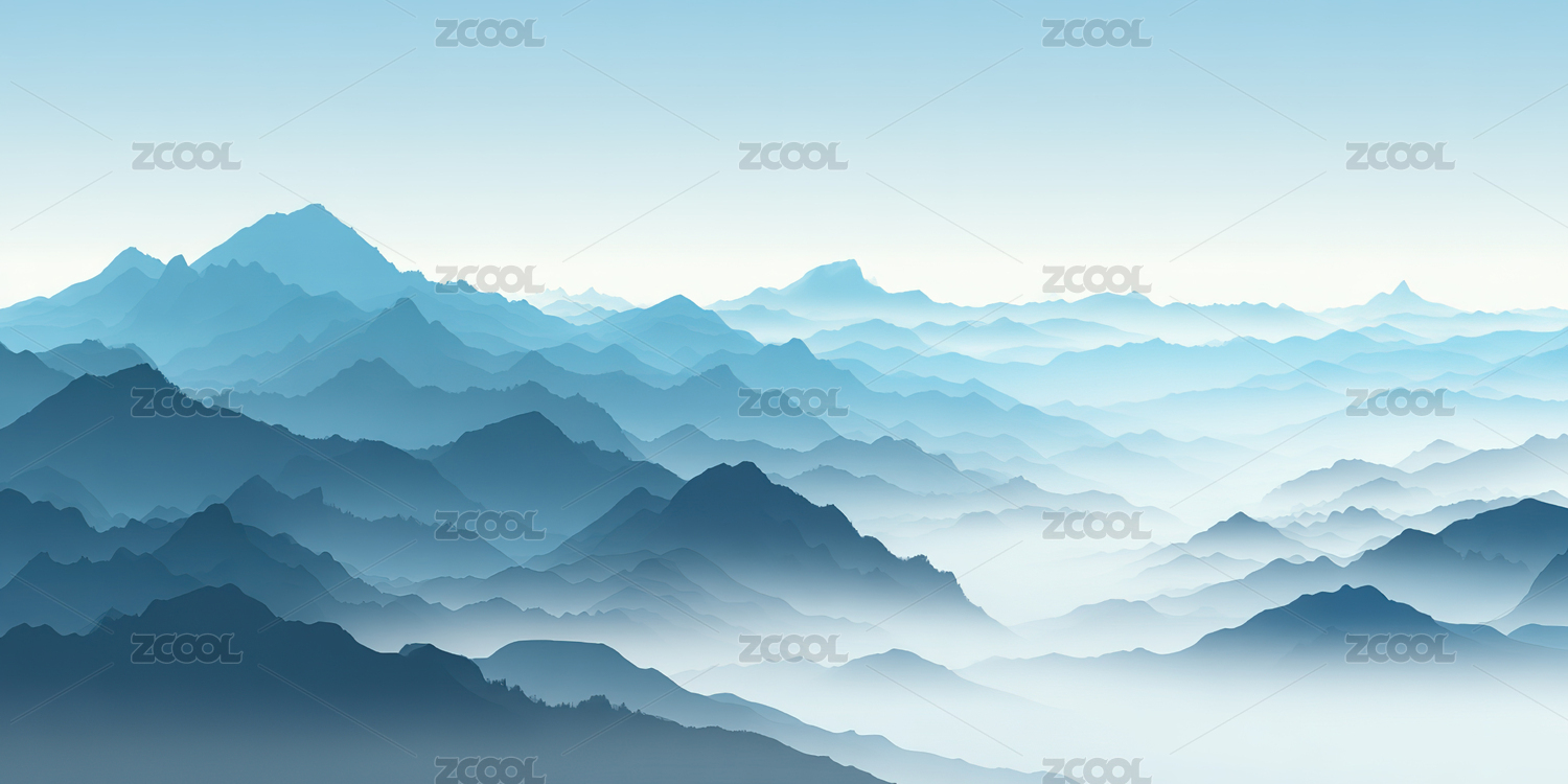山峰,山脉, 山水画, 水彩画, 自然风景, 远山, 山峦, 简约, 抽象, 蓝色