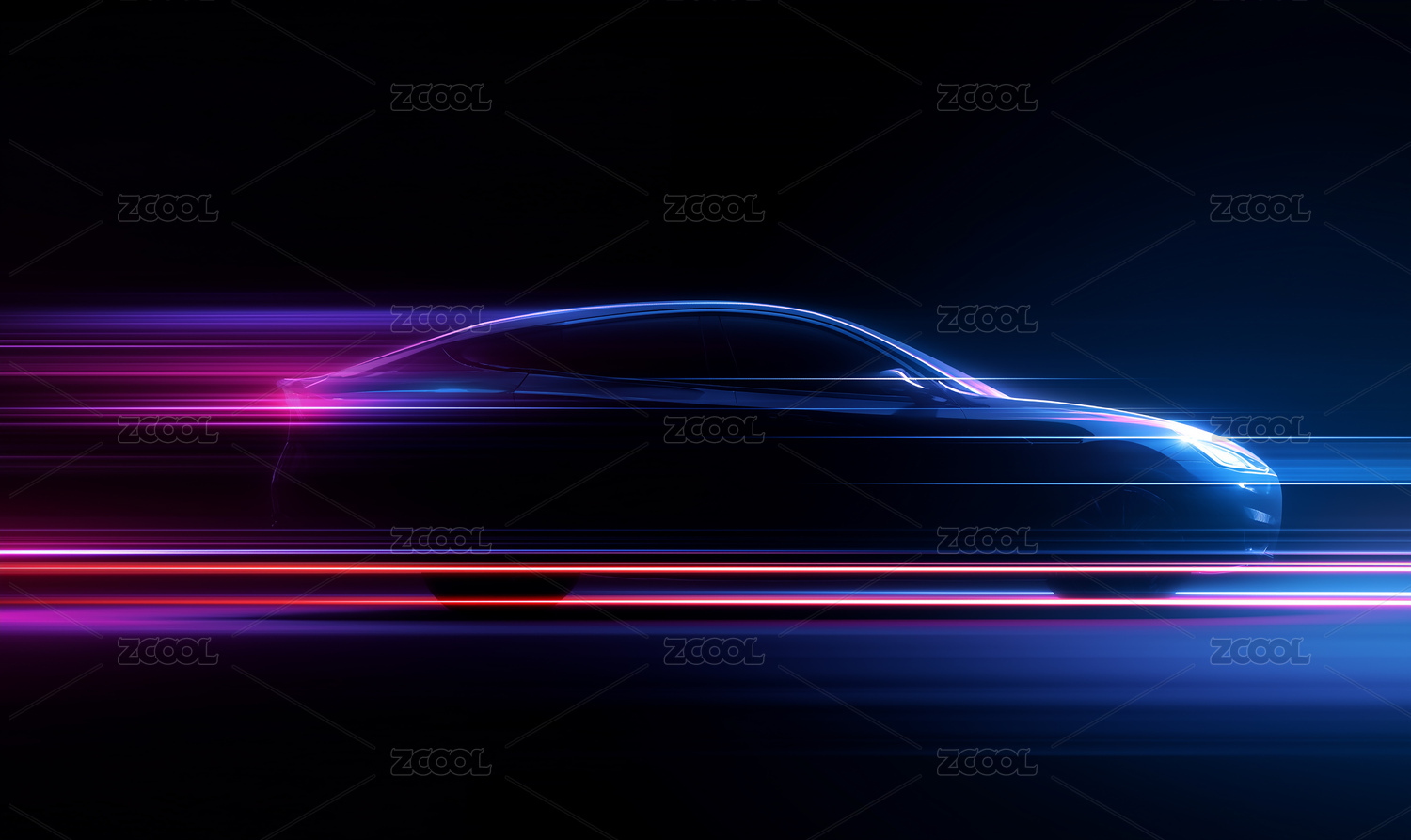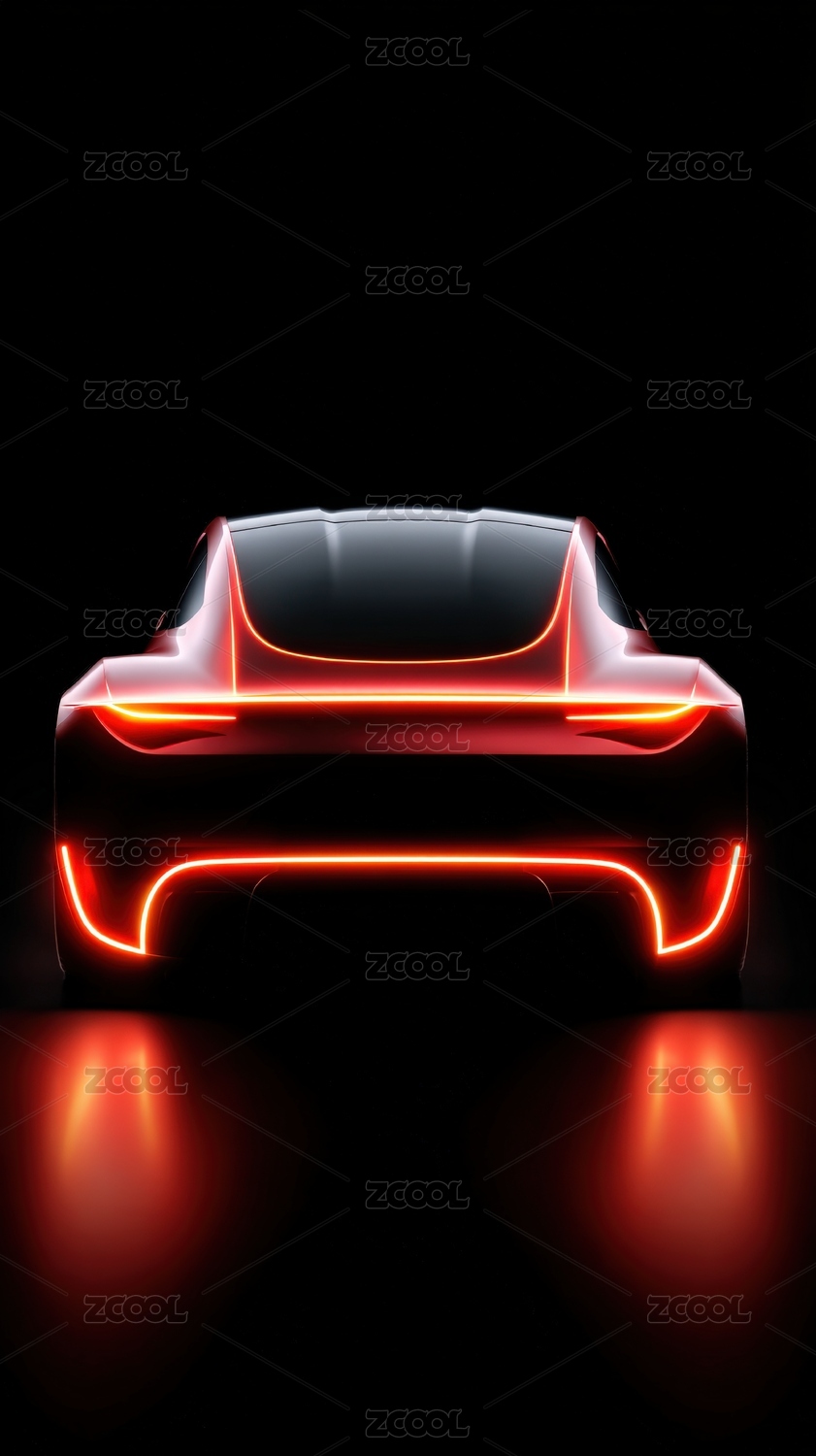 黑背景动感光带勾勒汽车轮廓创意图