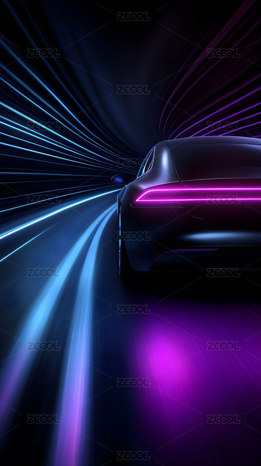 炫光动感汽车的创意科技插画素材