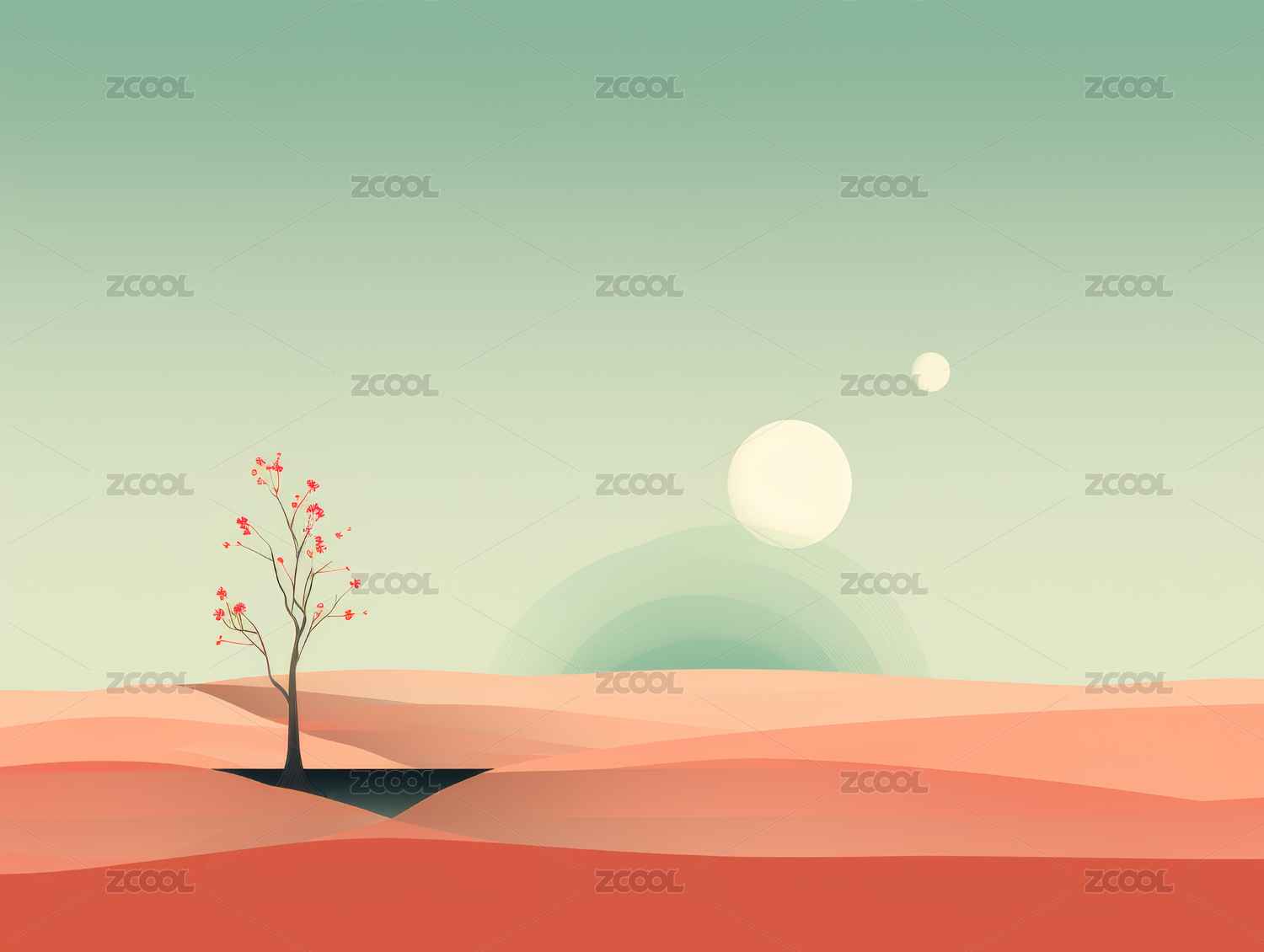 立秋节气户外旅行自然风景处暑卡通唯美插画
