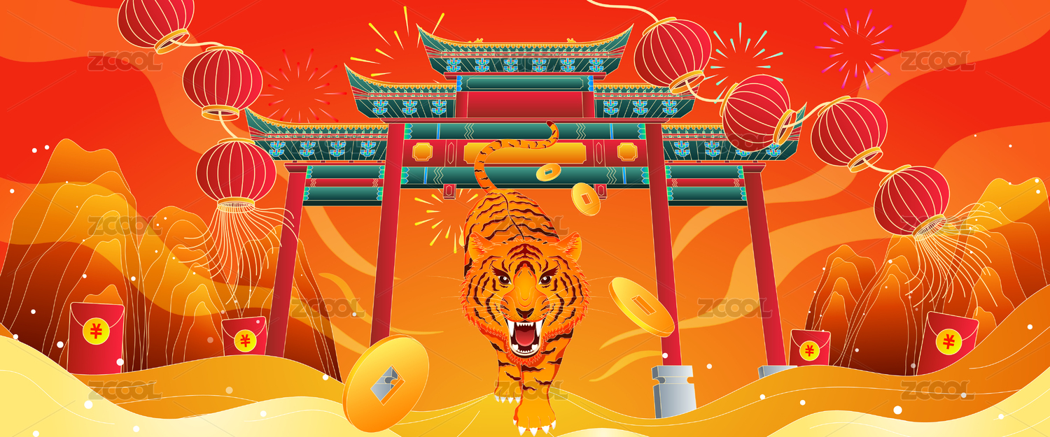新年,虎年,2022,元旦,年会,插画,春节,老虎,寅虎,节日