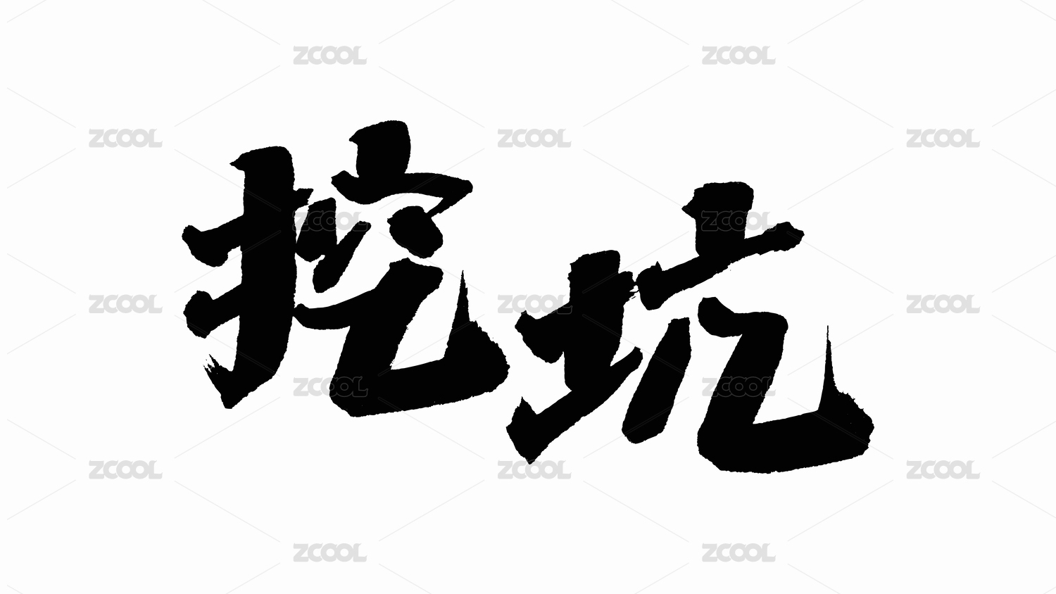 中国手写书法字体挖坑