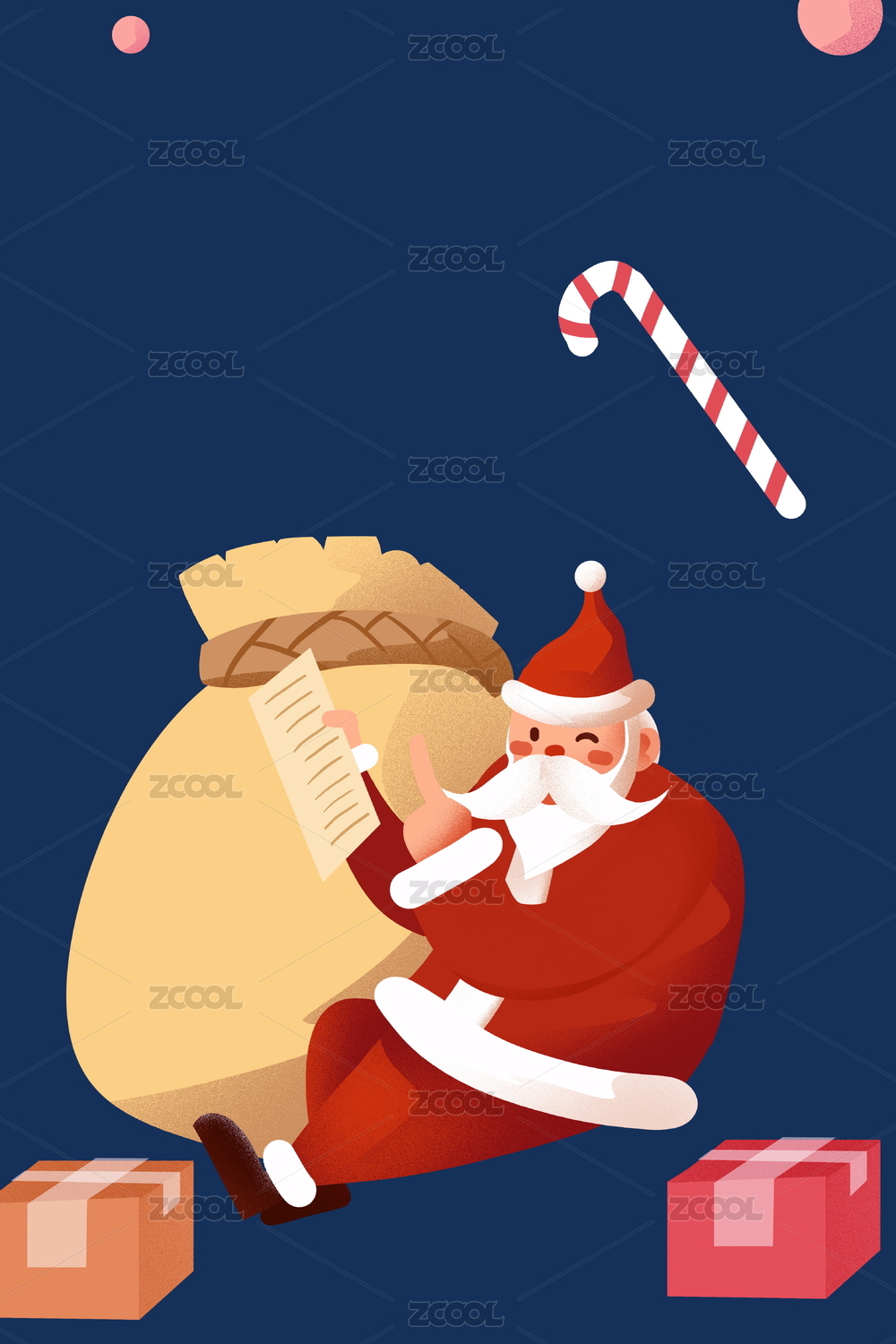 卡通手绘圣诞老人圣诞节送礼平安夜插画