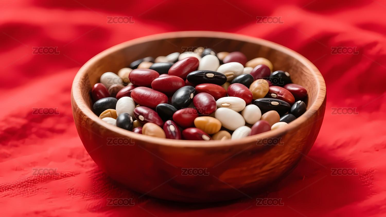 黑米红豆腊八粥五谷堆放在红色洒金纸