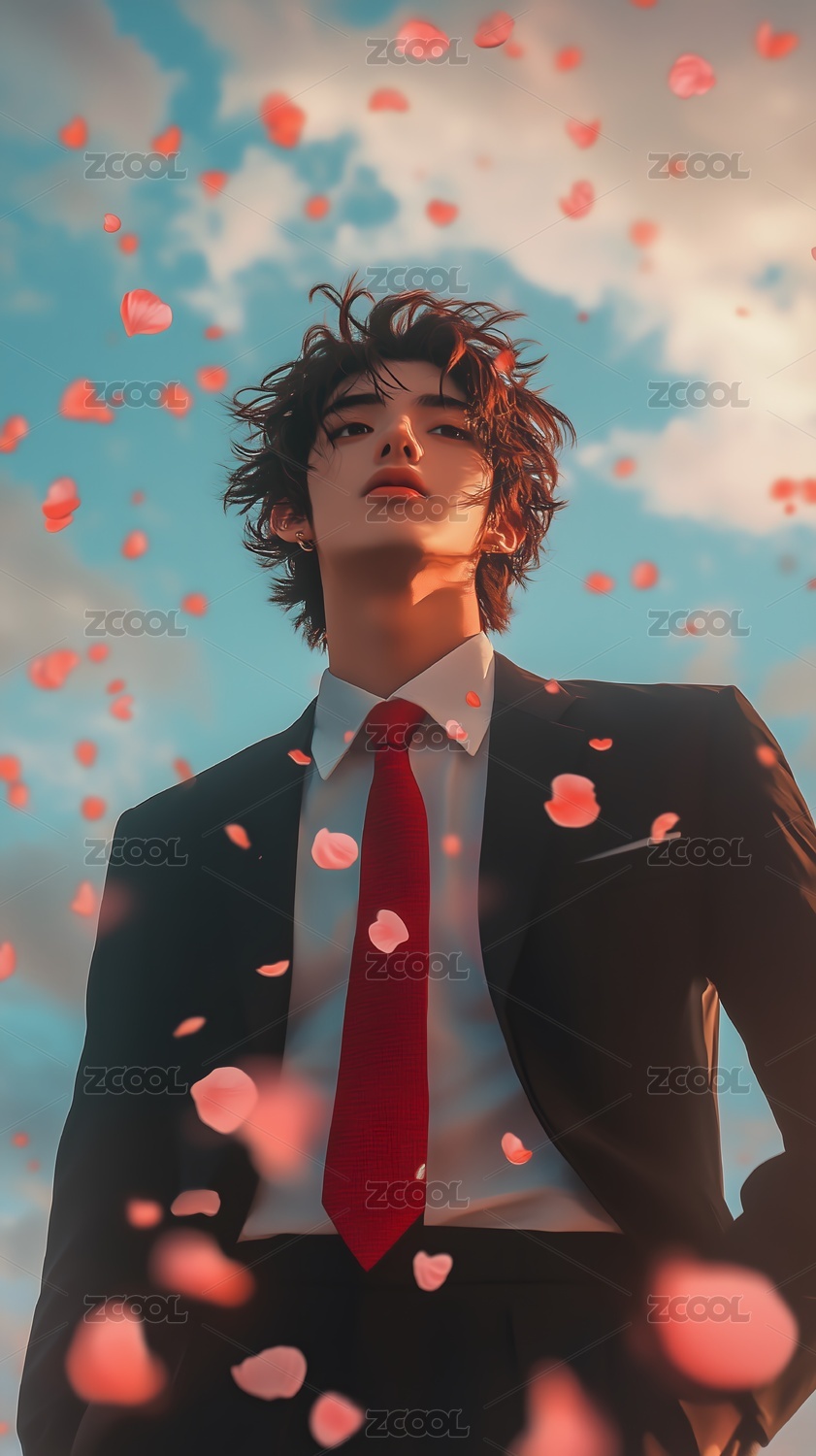 英俊的,二次元,男主角,闭着眼睛,樱花树
