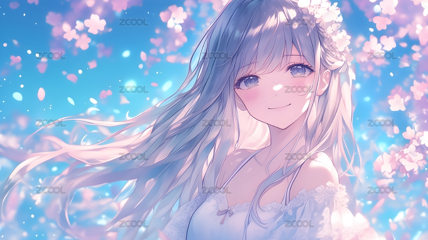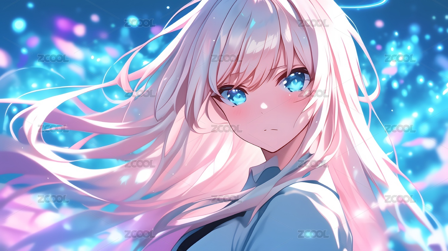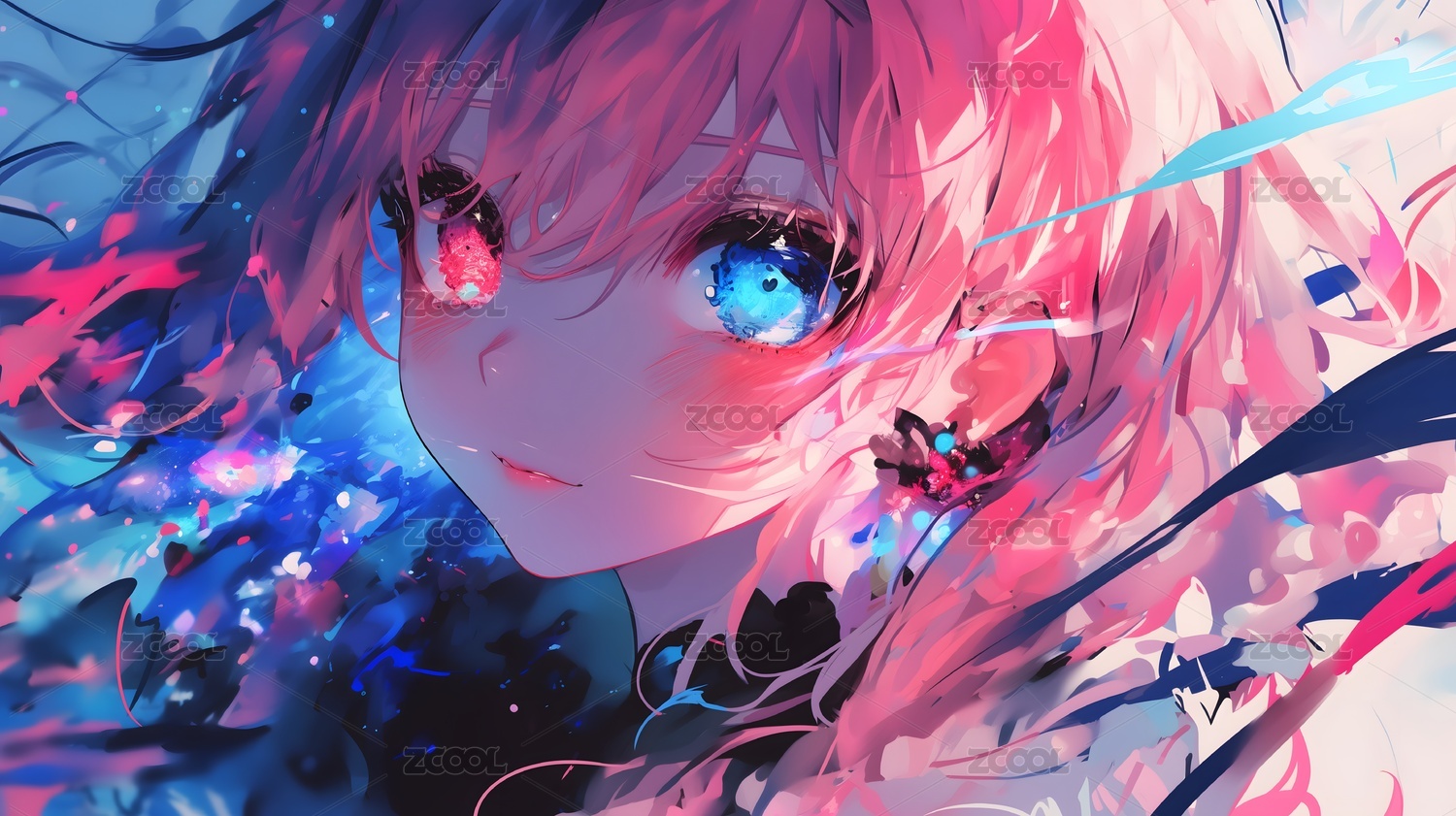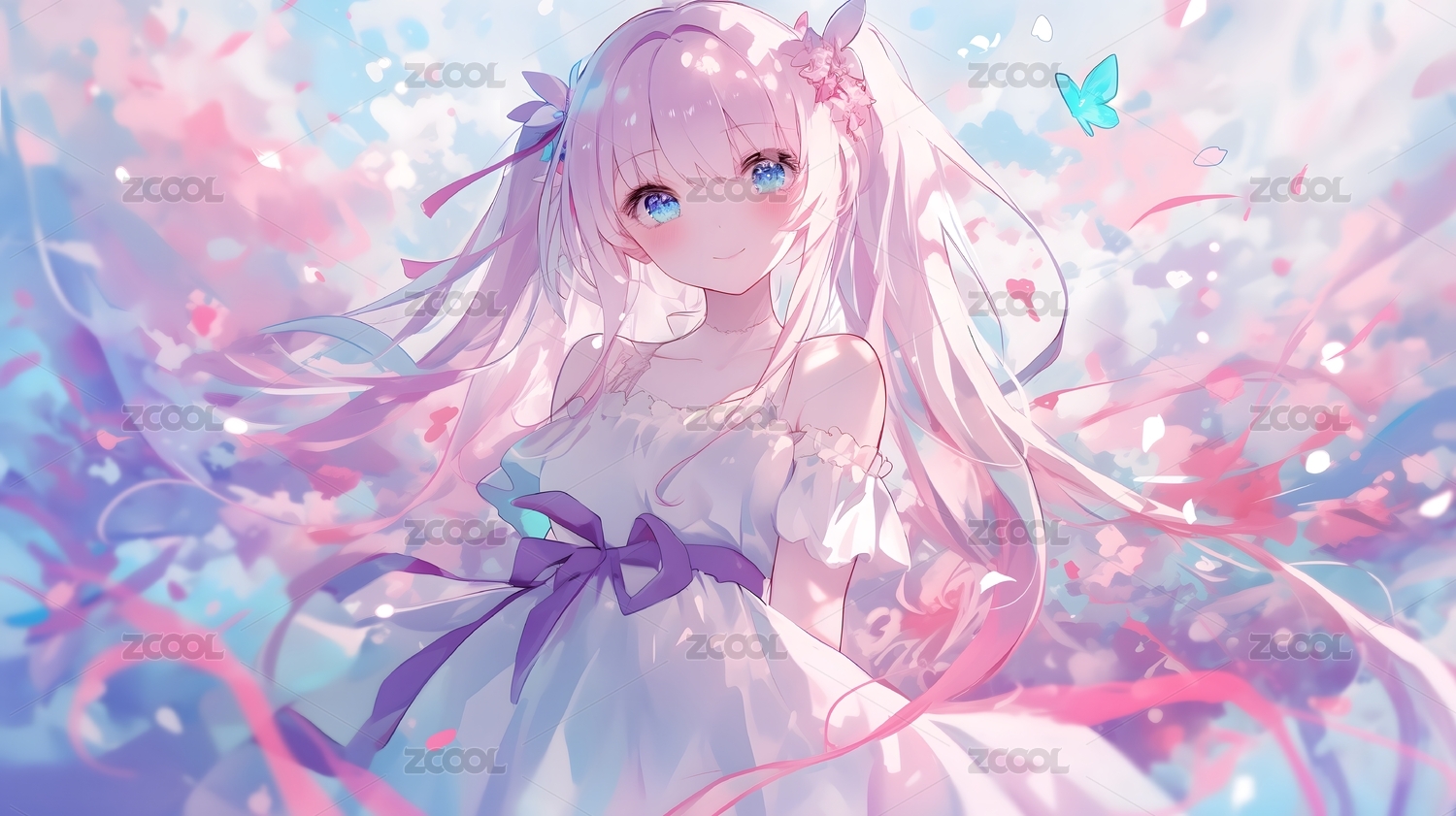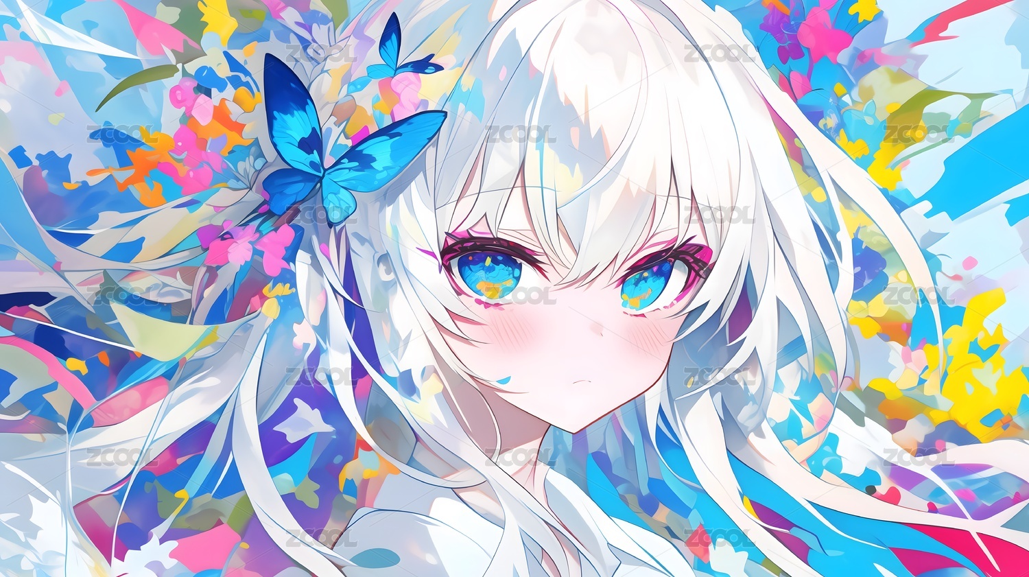可爱的动漫女孩缤纷的色彩壁纸背景