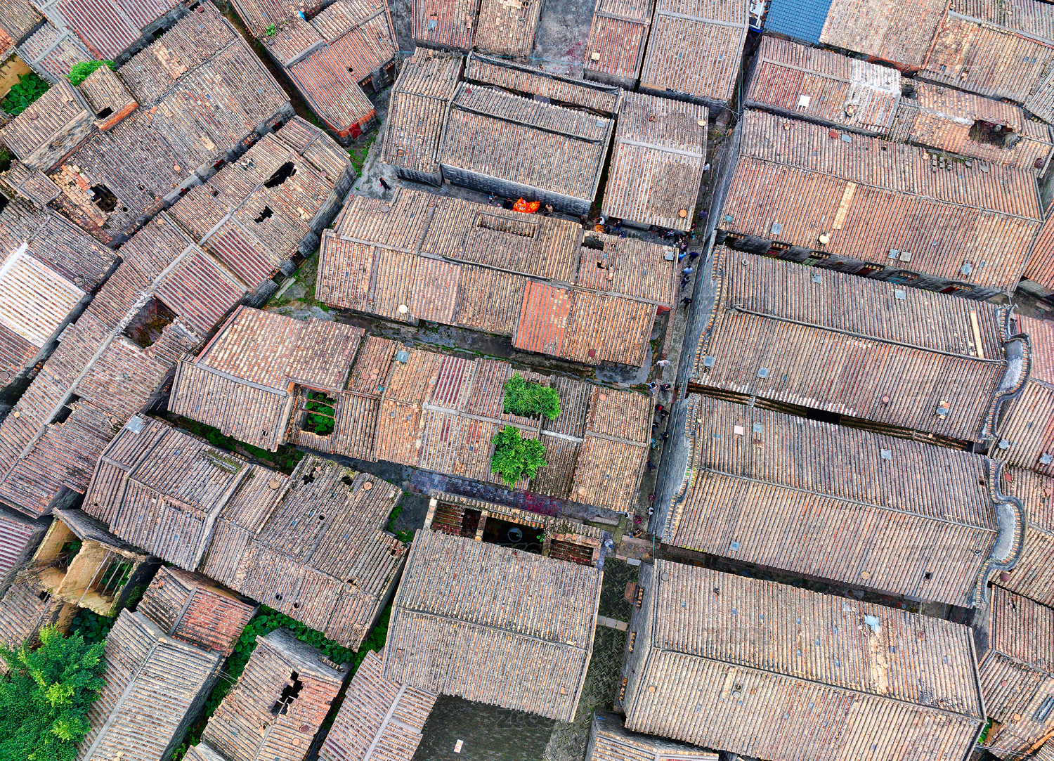 航拍中国广西省玉林市兴业县庞村清代建筑群