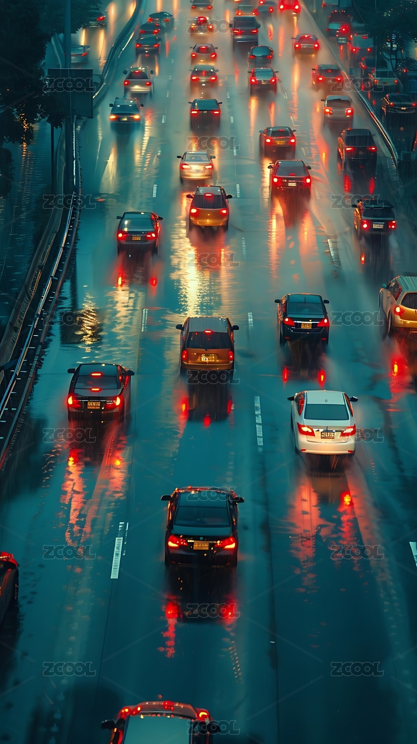 雨夜霓虹车流如潮