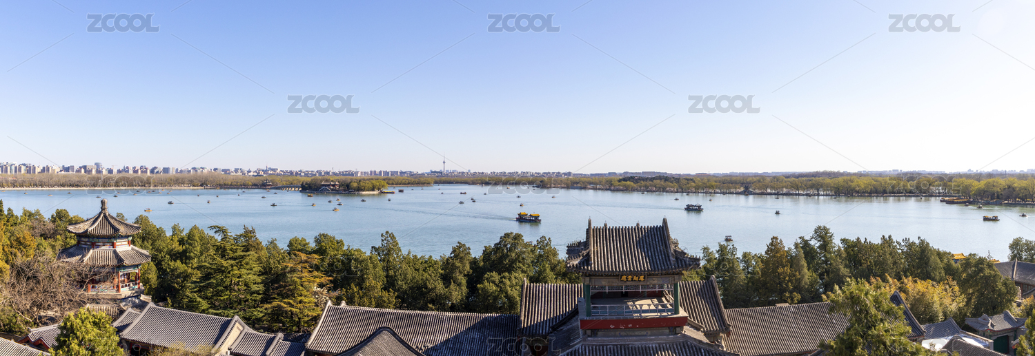 从中国北京颐和园画中游俯瞰颐和园建筑及昆明湖