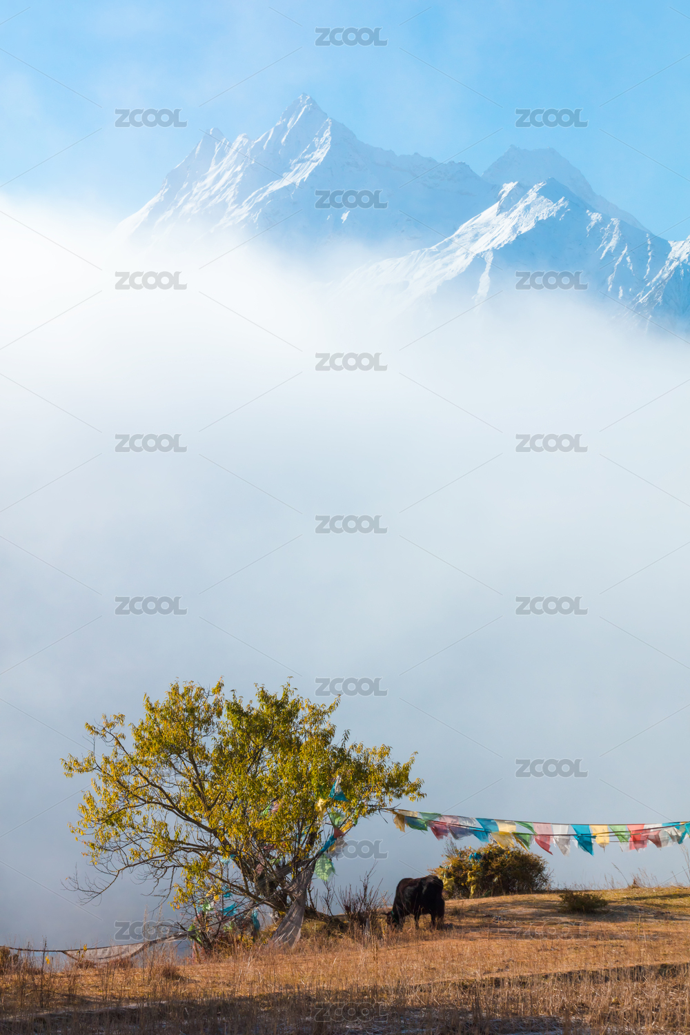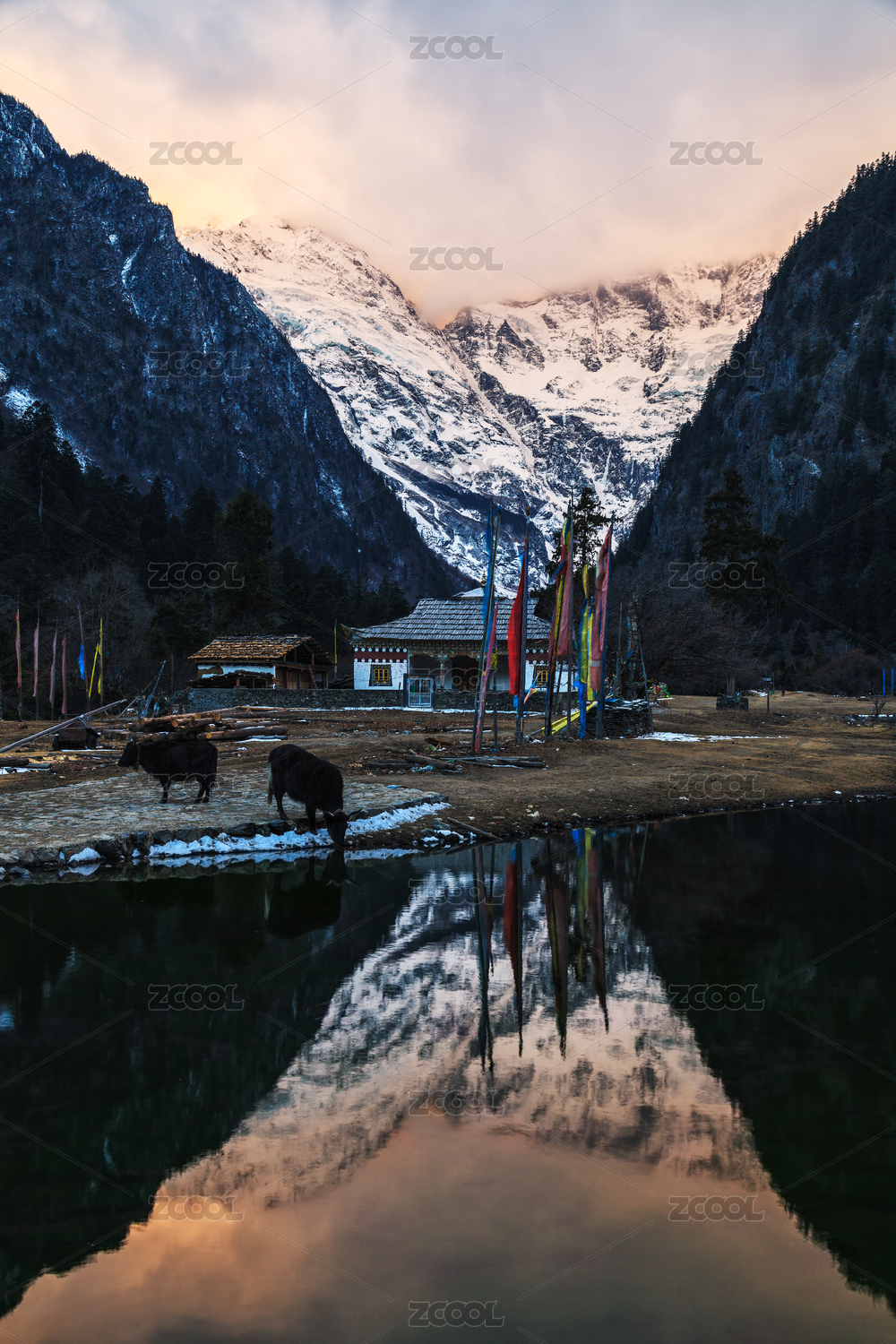 中国西藏梅里雪山西坡甲应村雪山下的藏香猪
