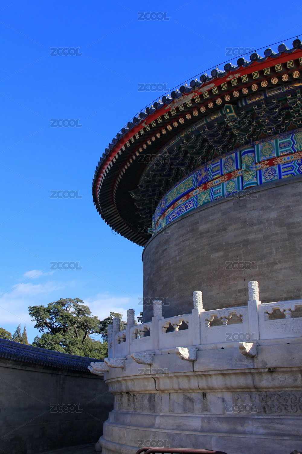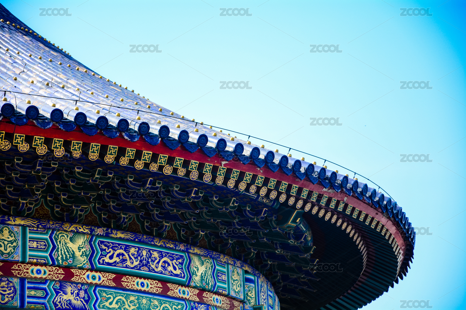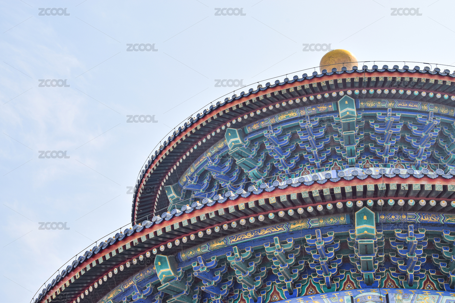 清晨阳光下的天坛皇穹宇蓝色屋顶特写