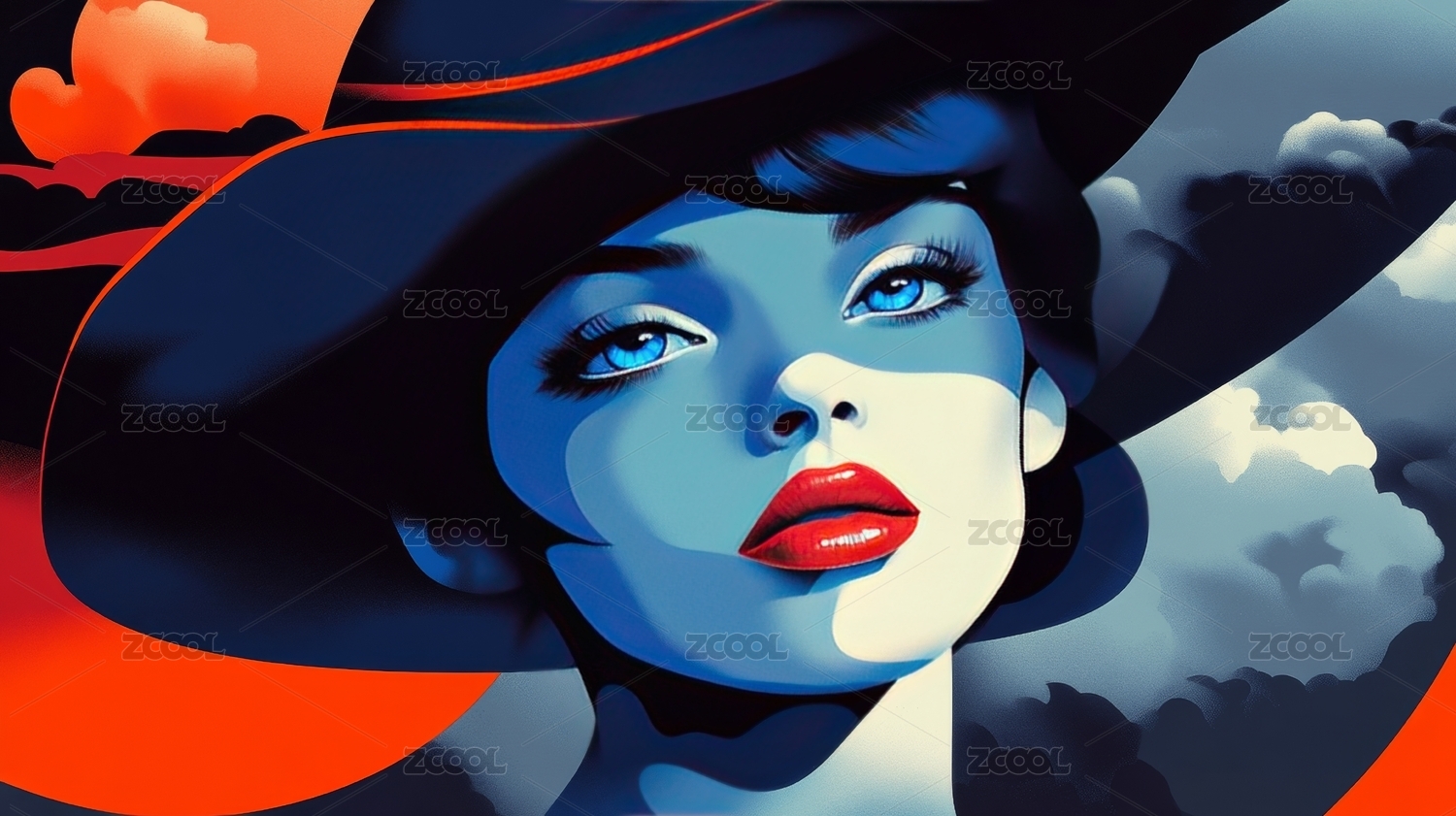 复古,女性,花卉,肖像,神秘,魅力,色彩,艺术,美学,氛围