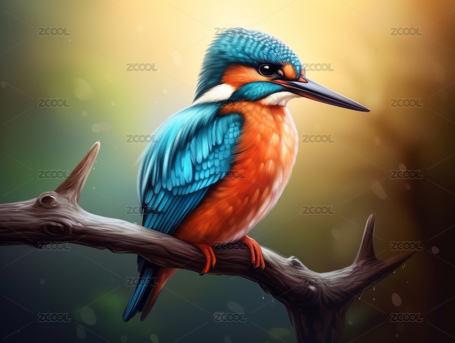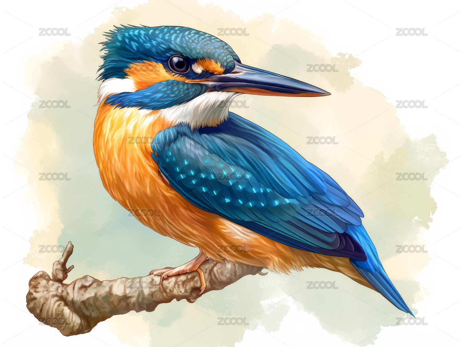 写实插画动物翠鸟