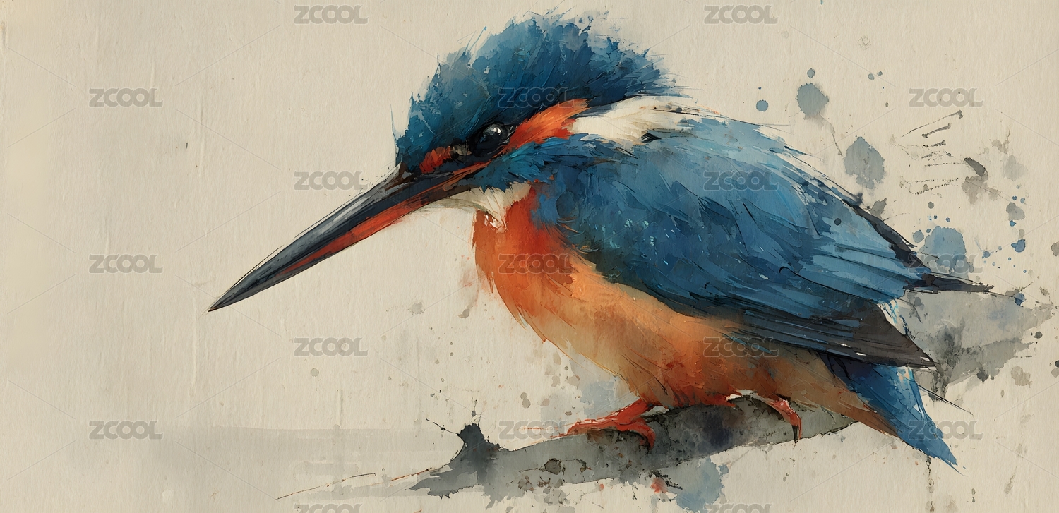 翠鸟栖息水墨写意绘画