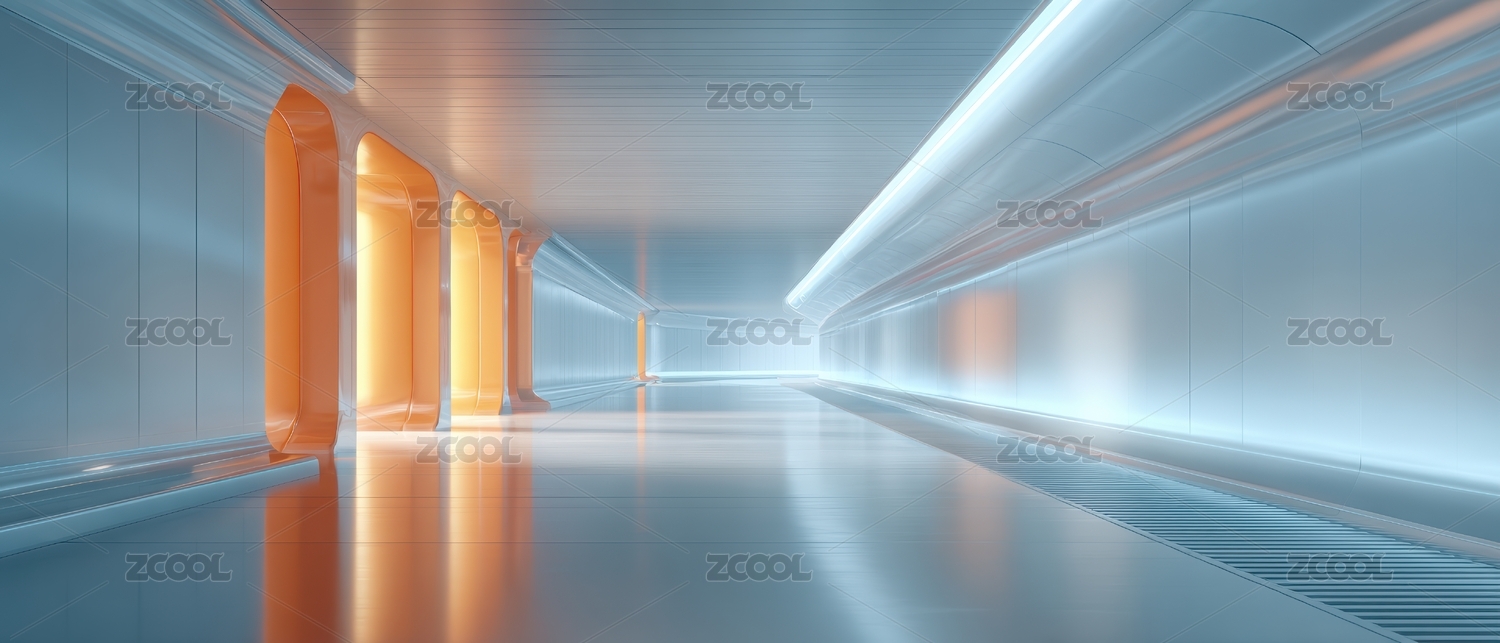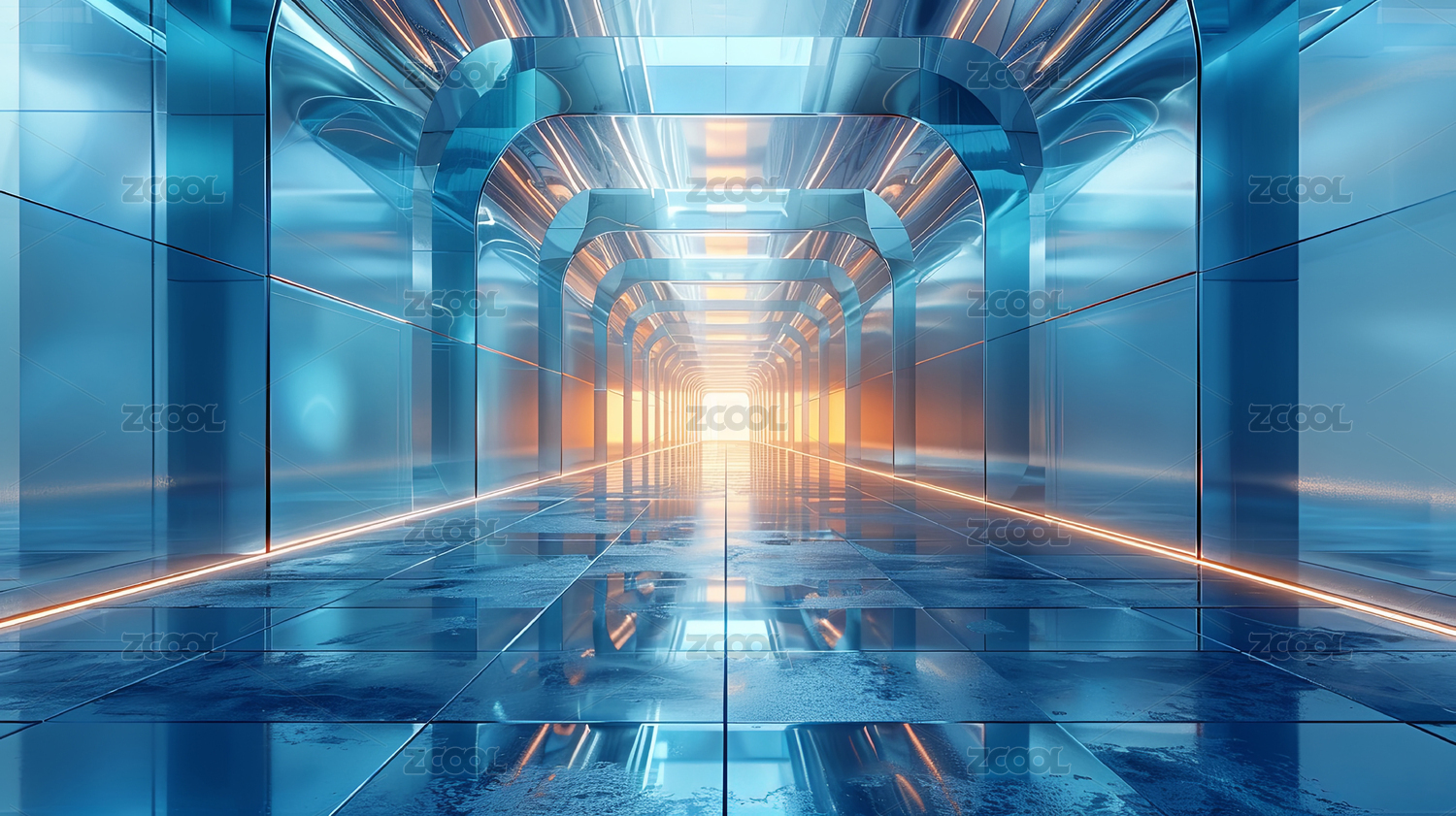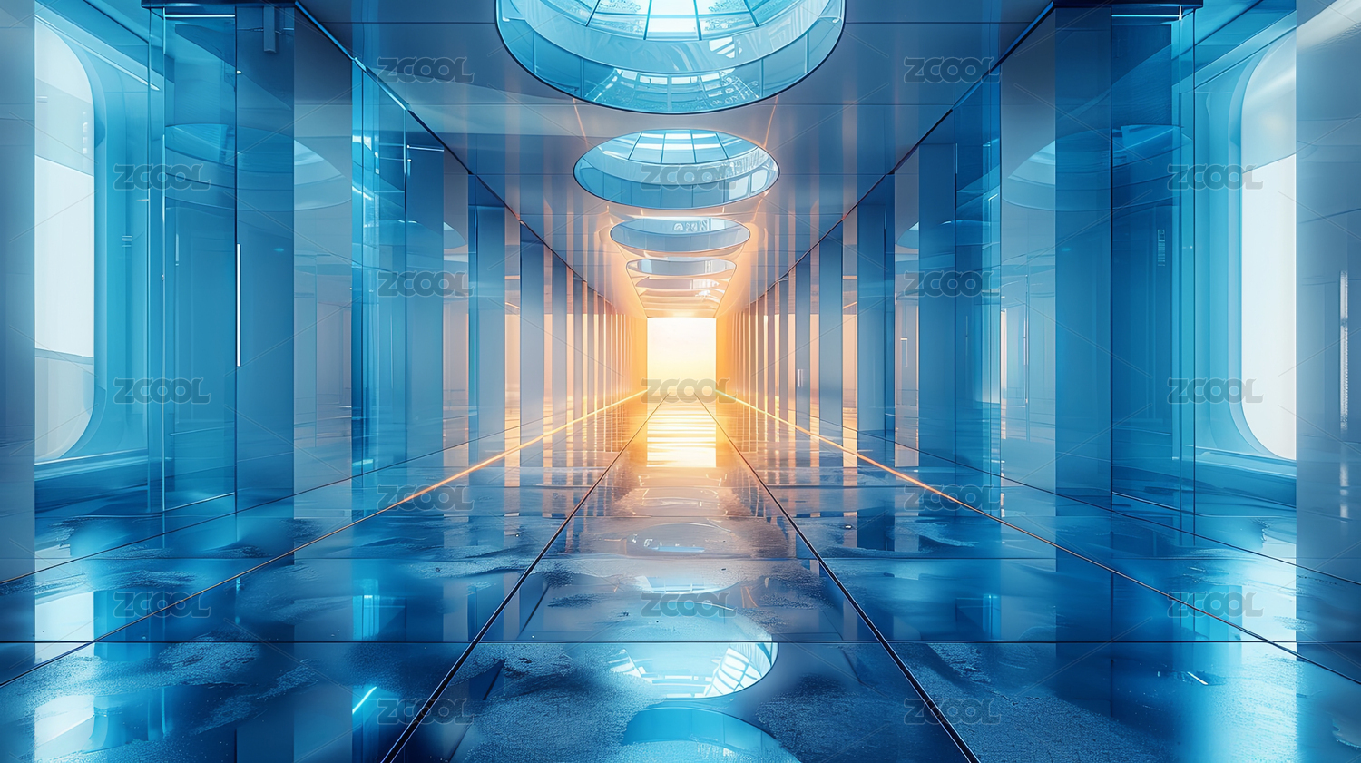 水晶,玻璃,蓝色,通道,穿梭,现代,未来,空间,背景,抽象