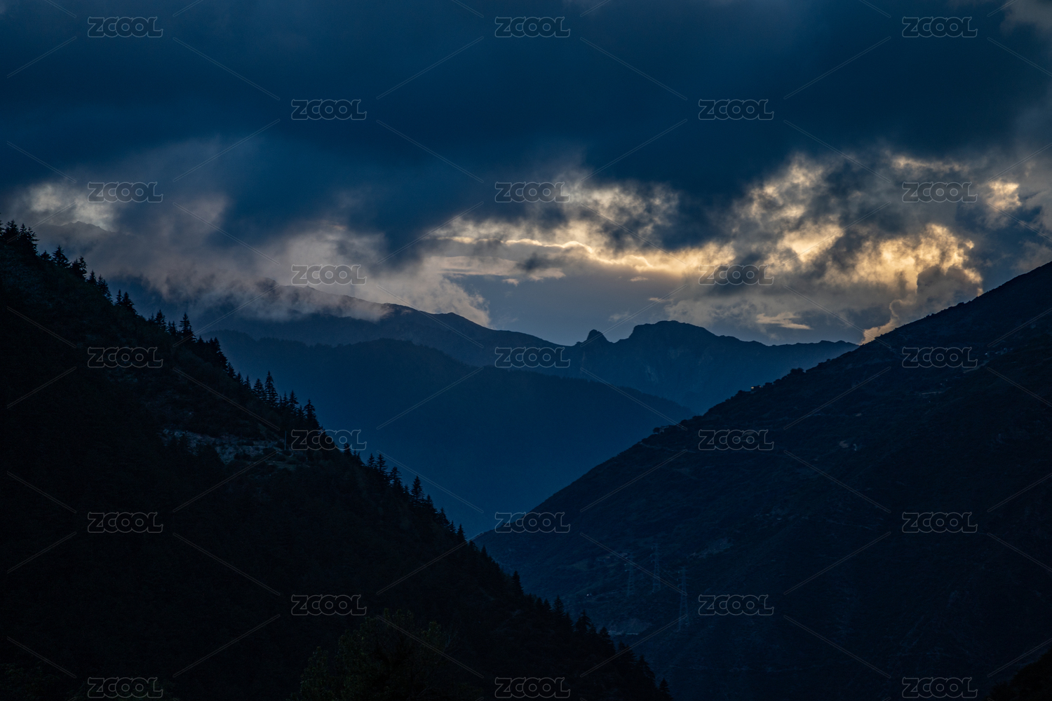 正在下雨的山
