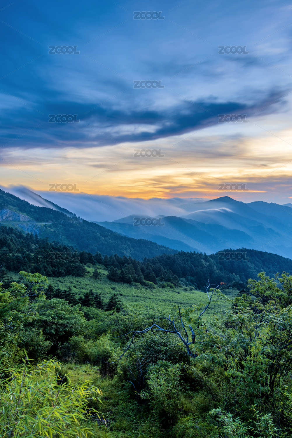 中国湖北神农架神农顶日落风光